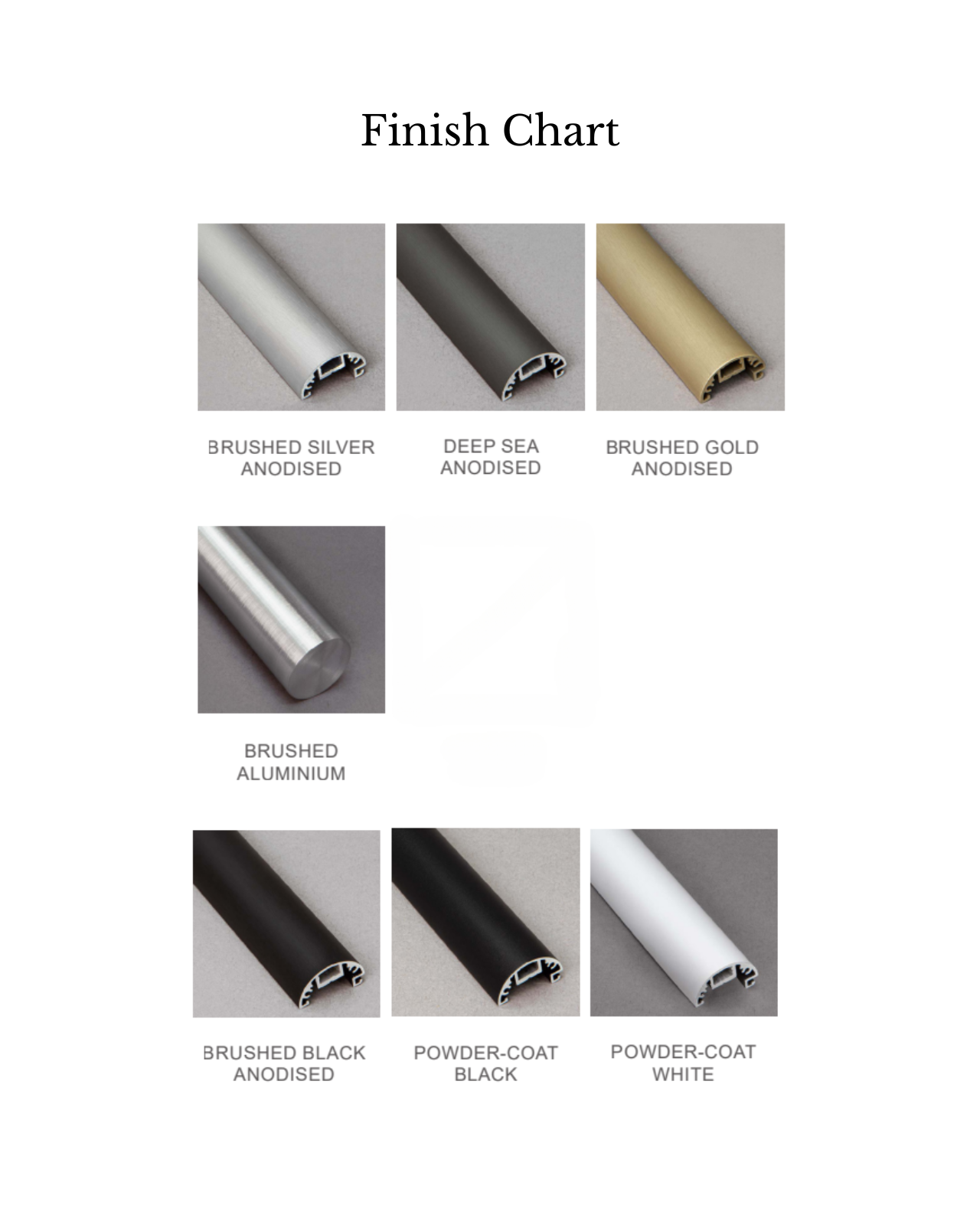 | Finish | Brushed Silver | Deep Sea | Brushed Gold | Brushed Black | Black | White |