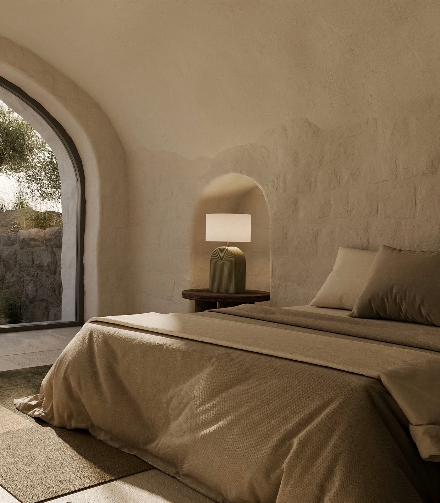 Striking a balance between architectural form and refined elegance, the grooved ceramic table lamp is a sculptural statement piece. The base, crafted from ceramic, features a series of precisely carved, concentric grooves that ripple outward in an arch-like pattern. This tactile detail not only adds visual depth, but also nods to classic design motifs with a contemporary twist. Combined with a soft cylindrical shade in a warm grey fabric, the fitting offers a calming contrast, gently diffusing light to create a warm and inviting atmosphere. Ideally styled on a bedside table, or a console table, this lamp brings a bold presence to minimalist and Art Deco spaces