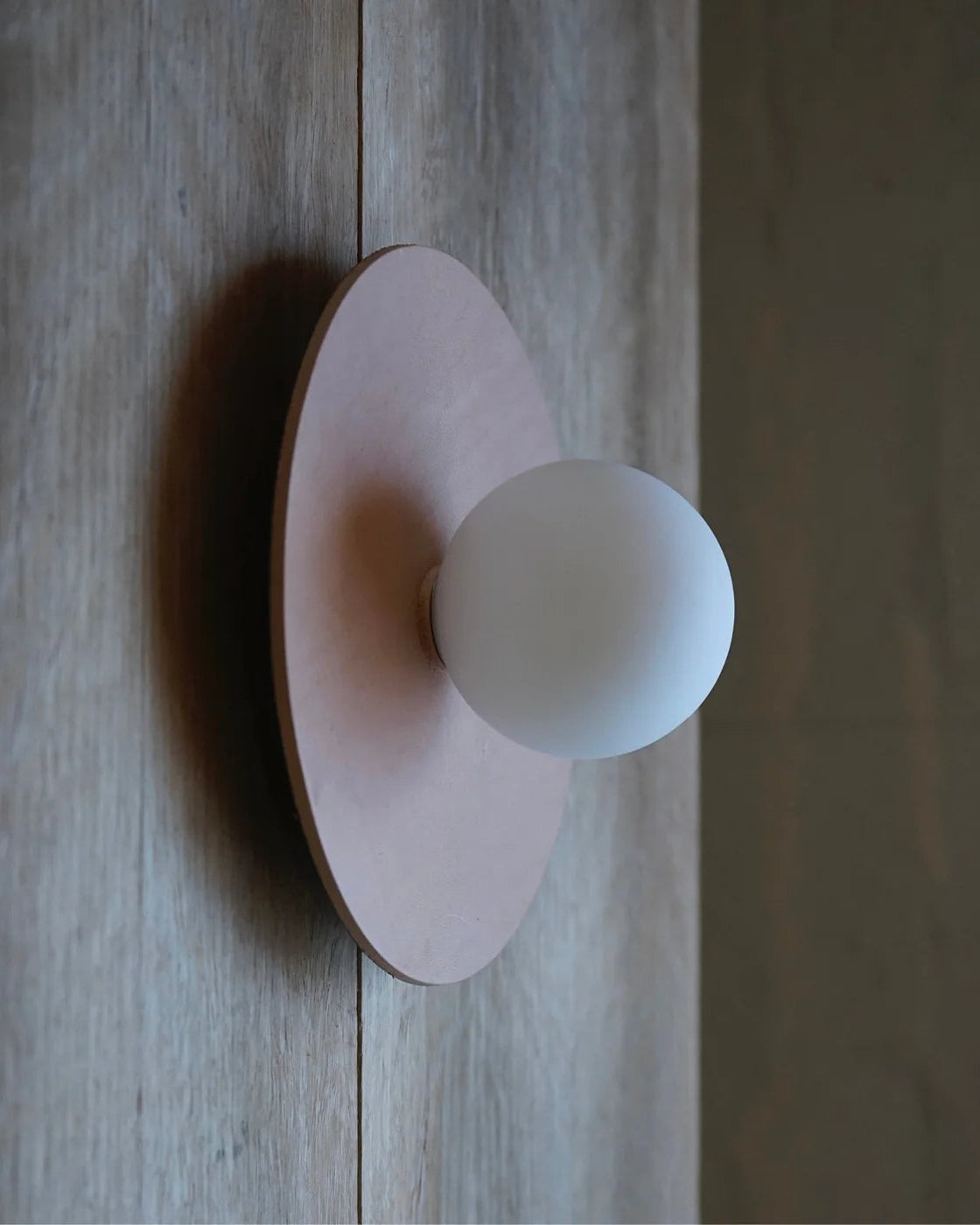Handmade in Melbourne from locally sourced materials, this leather Disc Wall Sconce is a testament to meticulous craftsmanship and considered design. The flat disc form offers a minimalistic yet organic textural shade to suit interior spaces. Available in four versatile finishes and textures to suit an array of designs - Natural, Olive, Dark Brown Emboss and Terracotta.