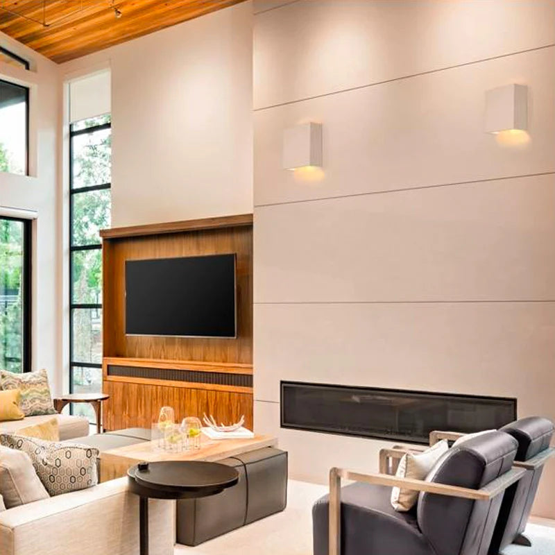 Square shaped and very minimalist, this wall light is a great discreet solution in your home or office. The LED diffuses smooth light upwards and downwards, ideal for hallways, stairwells and living rooms. Made from plaster, it can be easily painted any colour to suit your interior styles.