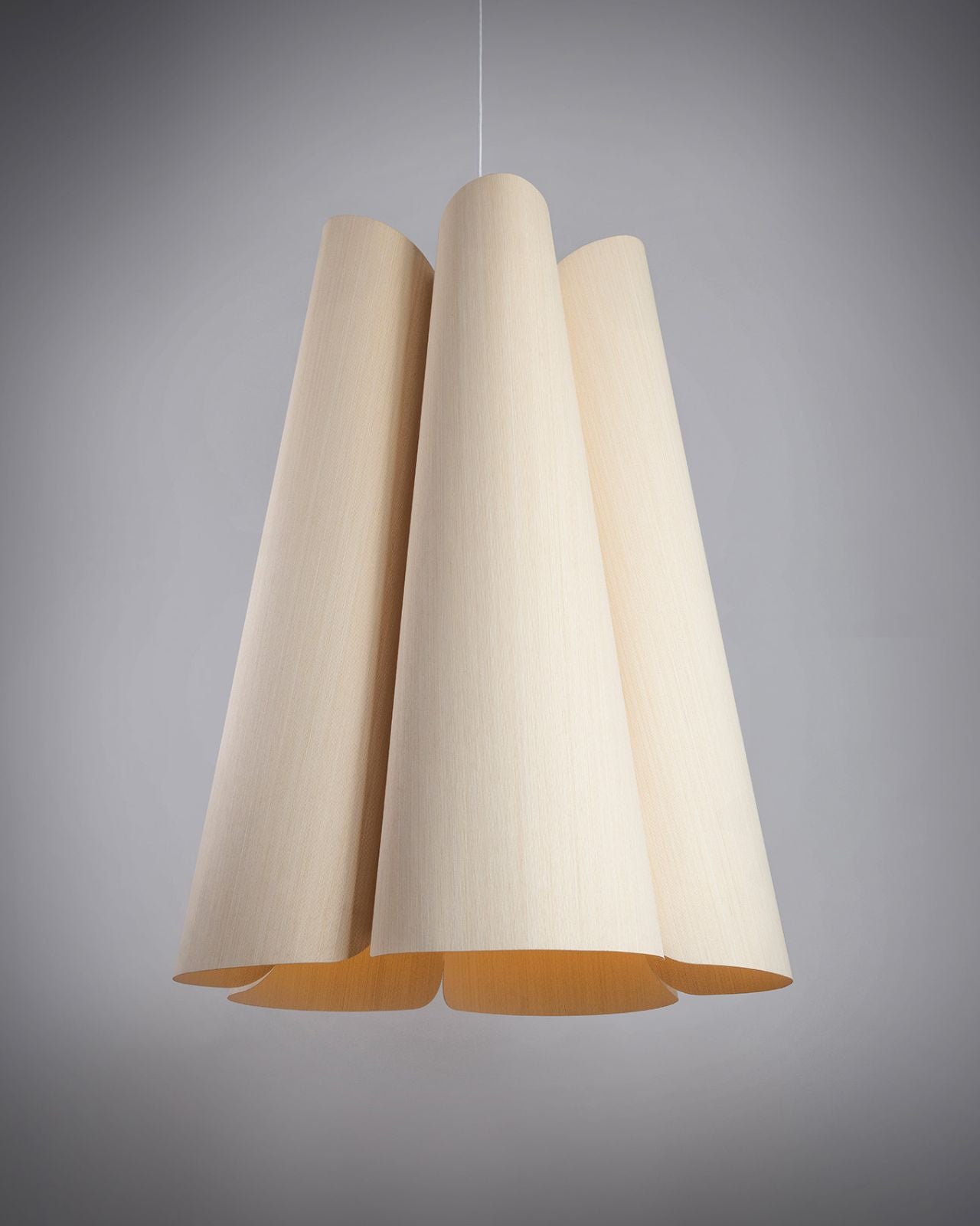This pendant boasts a flexible wood veneer which lends it a singular, aesthetically pleasing design. It's crafted with superior quality and is available in multiple finishes and sizes. Each pendant is a distinct piece with its own captivating character; its beauty is matched by its functionality, practicality, and versatility. Ideal for living areas, hallways and bedrooms as an individual fixture or in a group of various sizes in expansive areas.