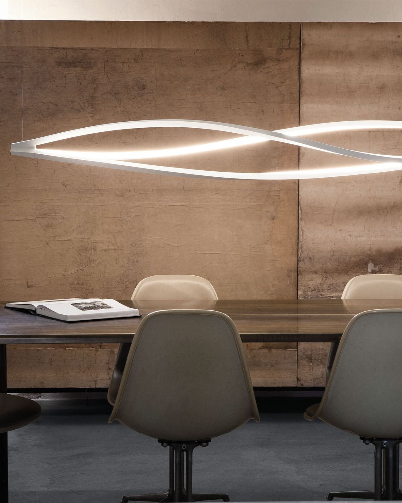 This light fitting emits a warmth LED glow, manufactured through the technology of torsion and misalignment, this twisted aluminium linear pendant boasts elegance and simplicity.