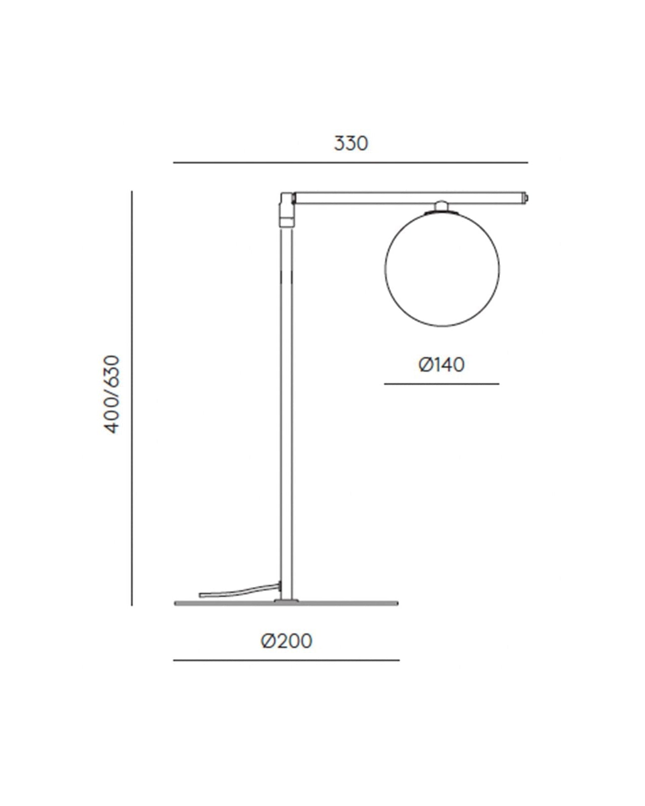 Modern table lamp with a white globe shade on a light gray background