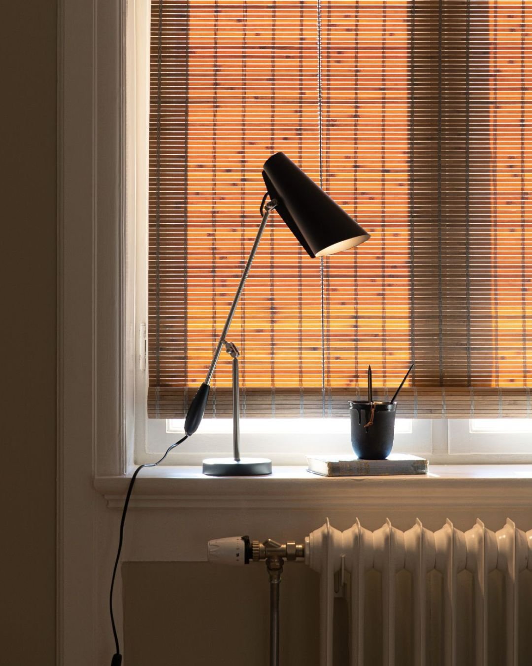Mid-Century Adjustable Table Lamp on a windowsill with bamboo blinds in the background