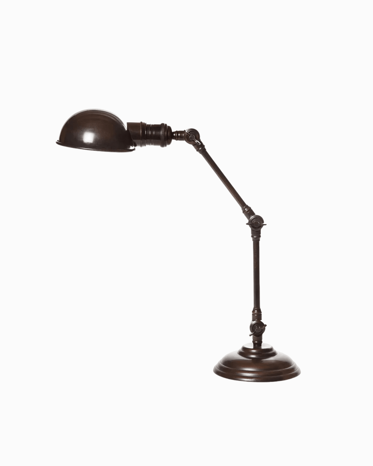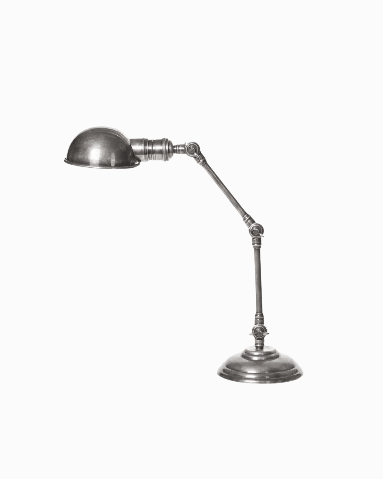 Designed to suit desks, side tables, and reading areas, the lamp balances practical function with considered form, making it suitable for workspaces as well as living and bedroom settings. Available in Bronze, Silver, and Antique Brass finishes.