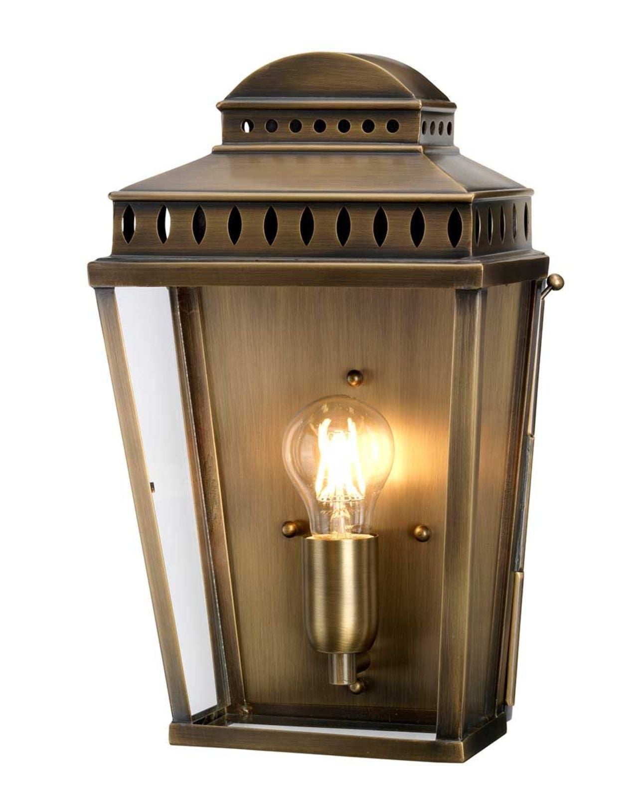 Part of a range of handmade exterior wall lanterns inspired by the traditional lights of pre-Georgian Britain. Handcrafted from solid brass, this quality wall light has timeless style and is sure to enhance to a variety of commercial or residential exteriors. The solid brass frame is ideal for coastal application and will age beautifully like an old brass garden tap, please note that the 'polished' finishes will be effected by this.