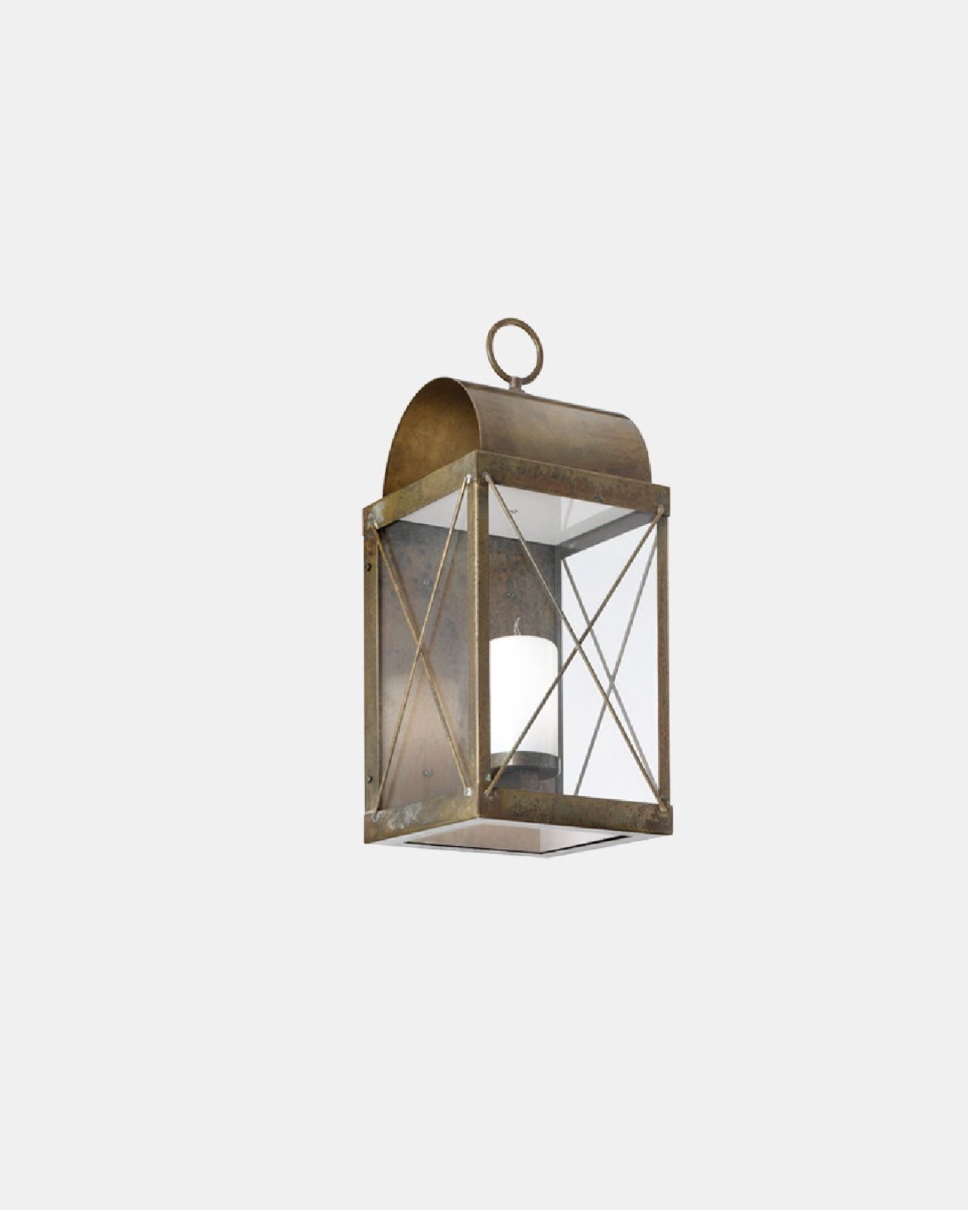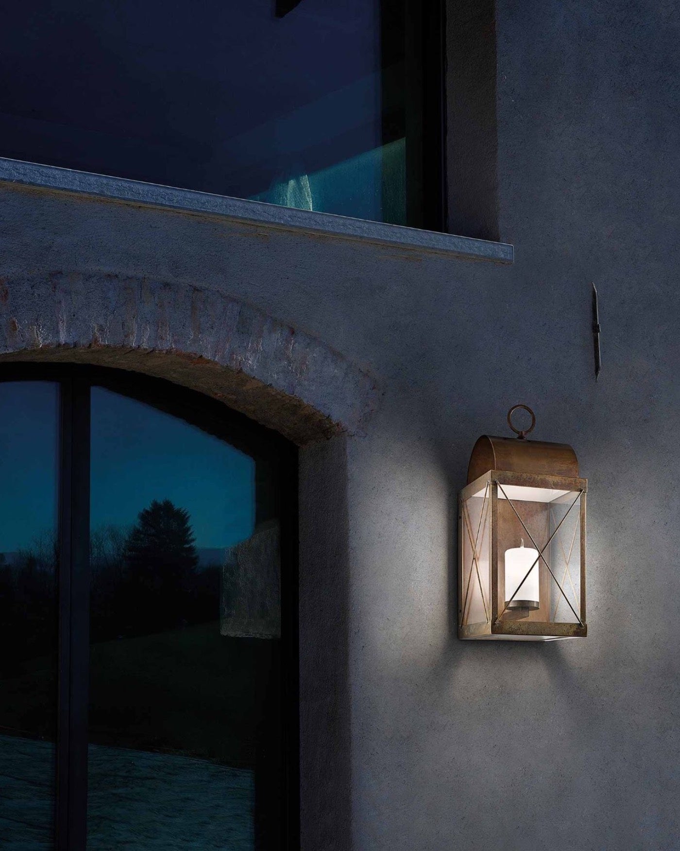 Drawing inspiration from traditional lanterns and oriental design, this handmade Italian wall light will add timeless style to your outdoor area. It features a frame of antique brass, complemented by luxurious Murano glass and a faux-candle lamp holder.