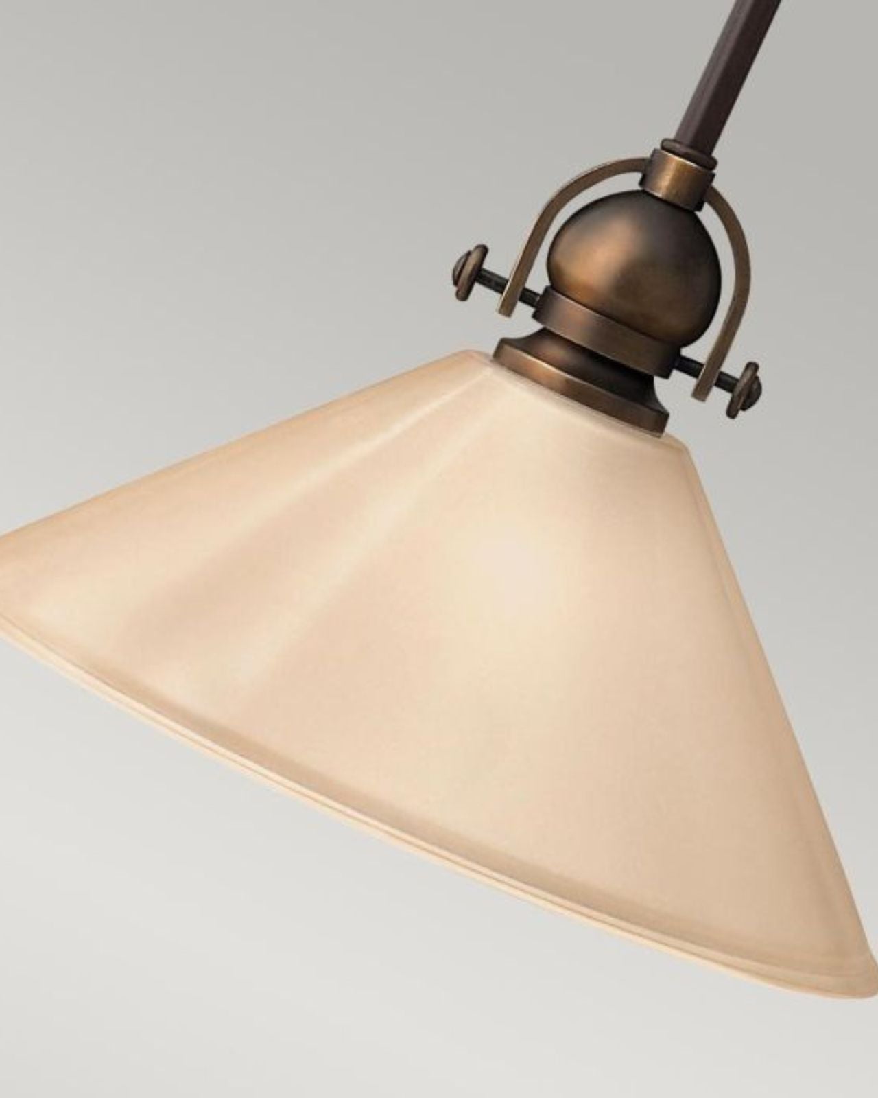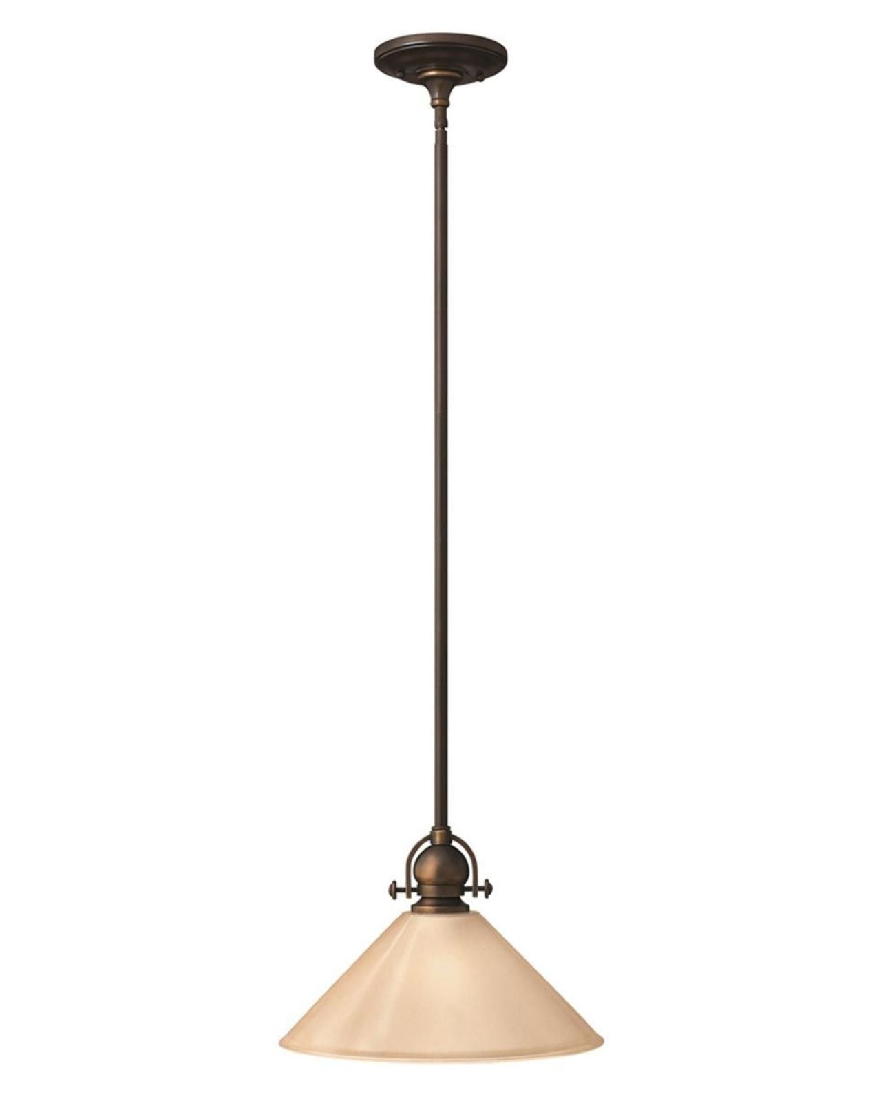 Featuring an old bronze finish with etched amber glass, this traditional classic pendant light would be a simply elegant addition to your living spaces. Made from yoke-mount glass and decorative cast tension detailing this pendant is sure to bring a vintage flair.