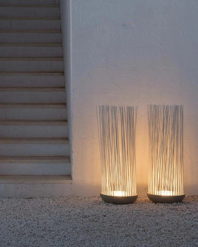 The Italian Rod Floor Lamp redefines the expectation of traditional exterior lighting. Designed in Italy its integrated LED emits light from the lamp's base and filters through its reed-like rods, providing warm diffused illumination. This fitting is featured with a Silicone Ring Accessory enabling an alternative Hour Glass Form.