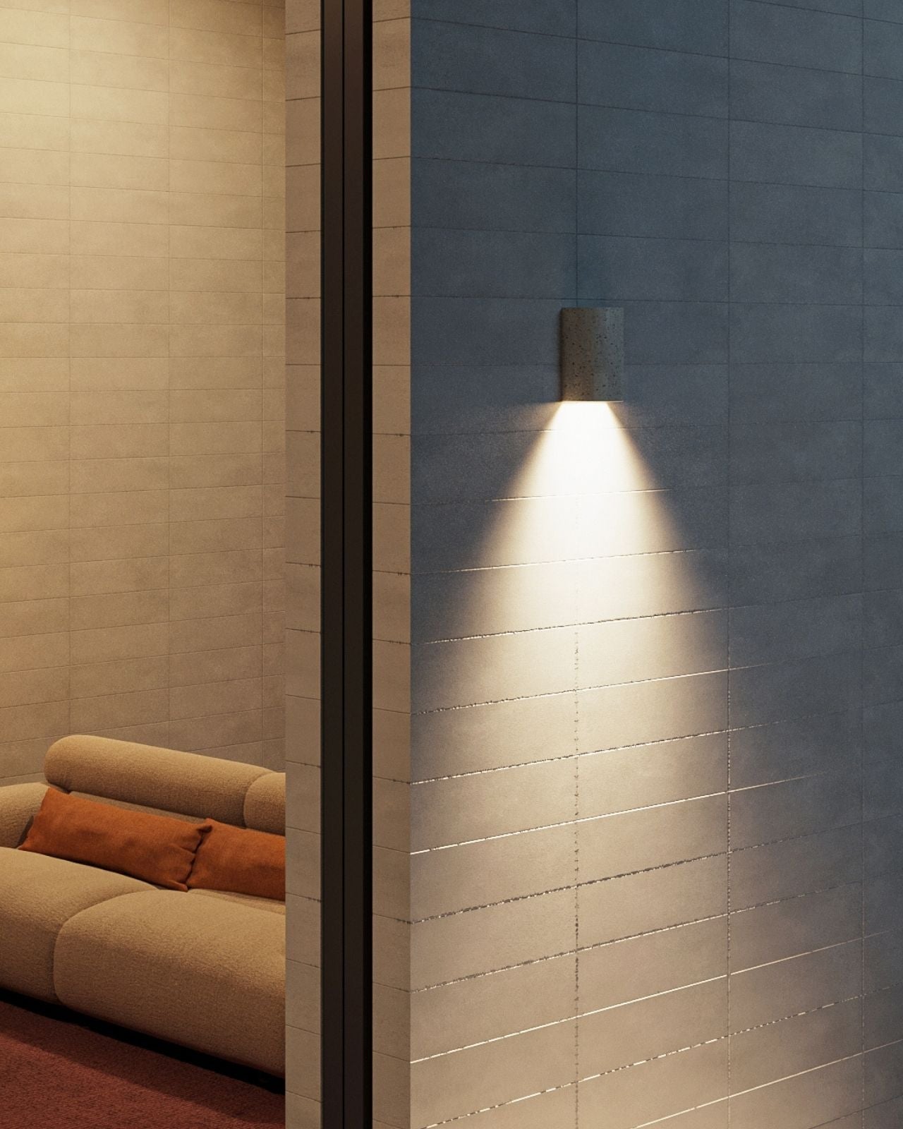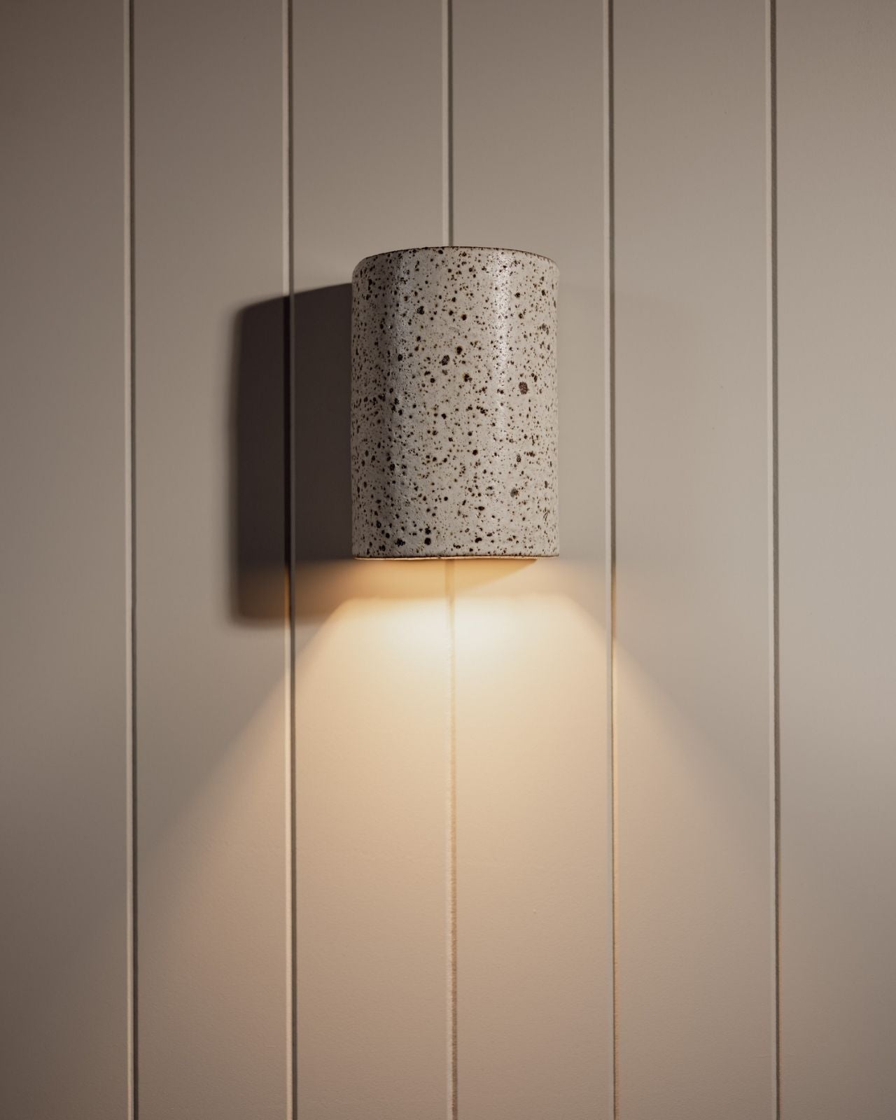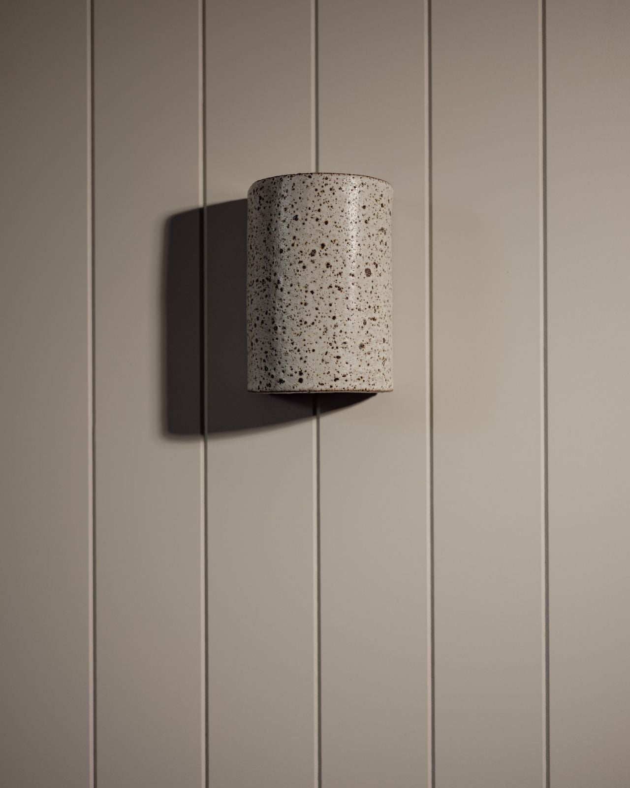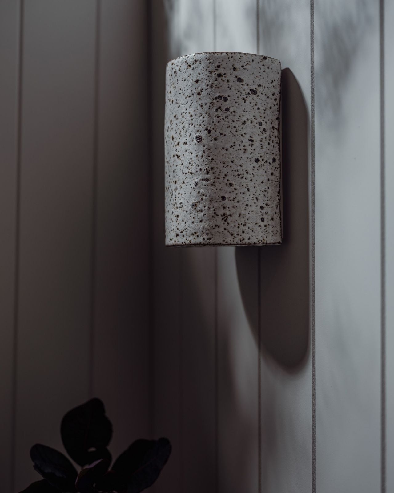 Proudly handmade in Tasmania this ceramic wall light provides exceptional warmth and ambience to any outdoor space. Crafted with a flecked ceramic, eggshell white low-sheen glaze, and high kiln firing, it ensures a robust, durable form. The custom backplate adds a nearly invisible touch, allowing it to fit on any wall finish snugly.