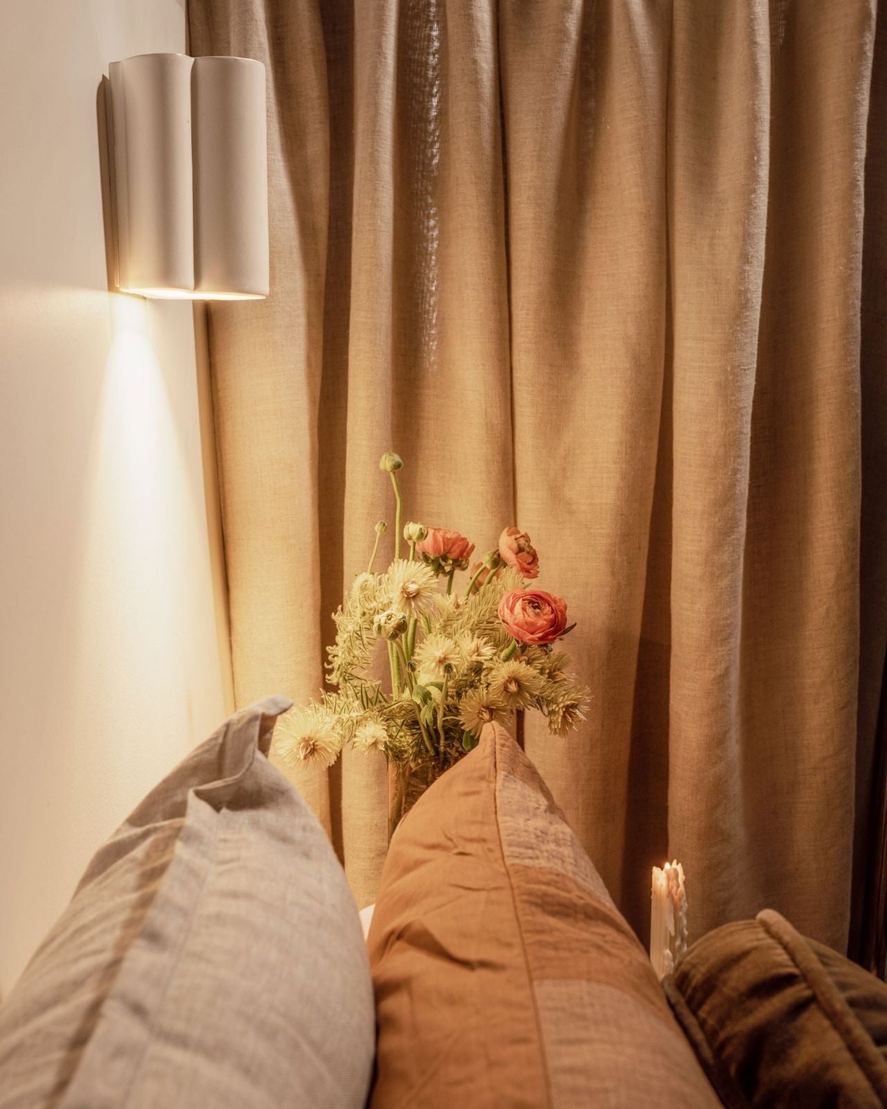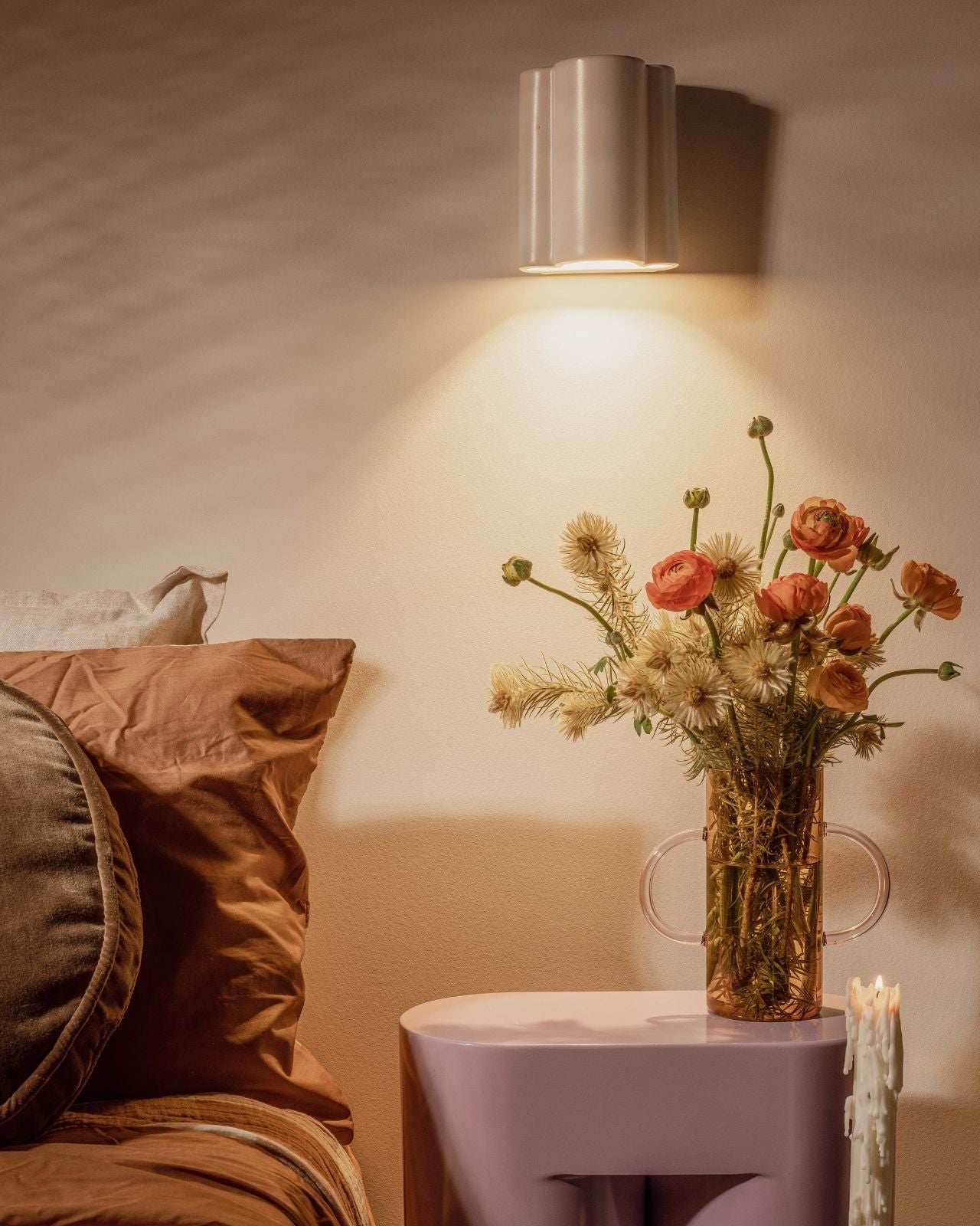 Handmade Curved Clay Wall Light | Cloud By a bed