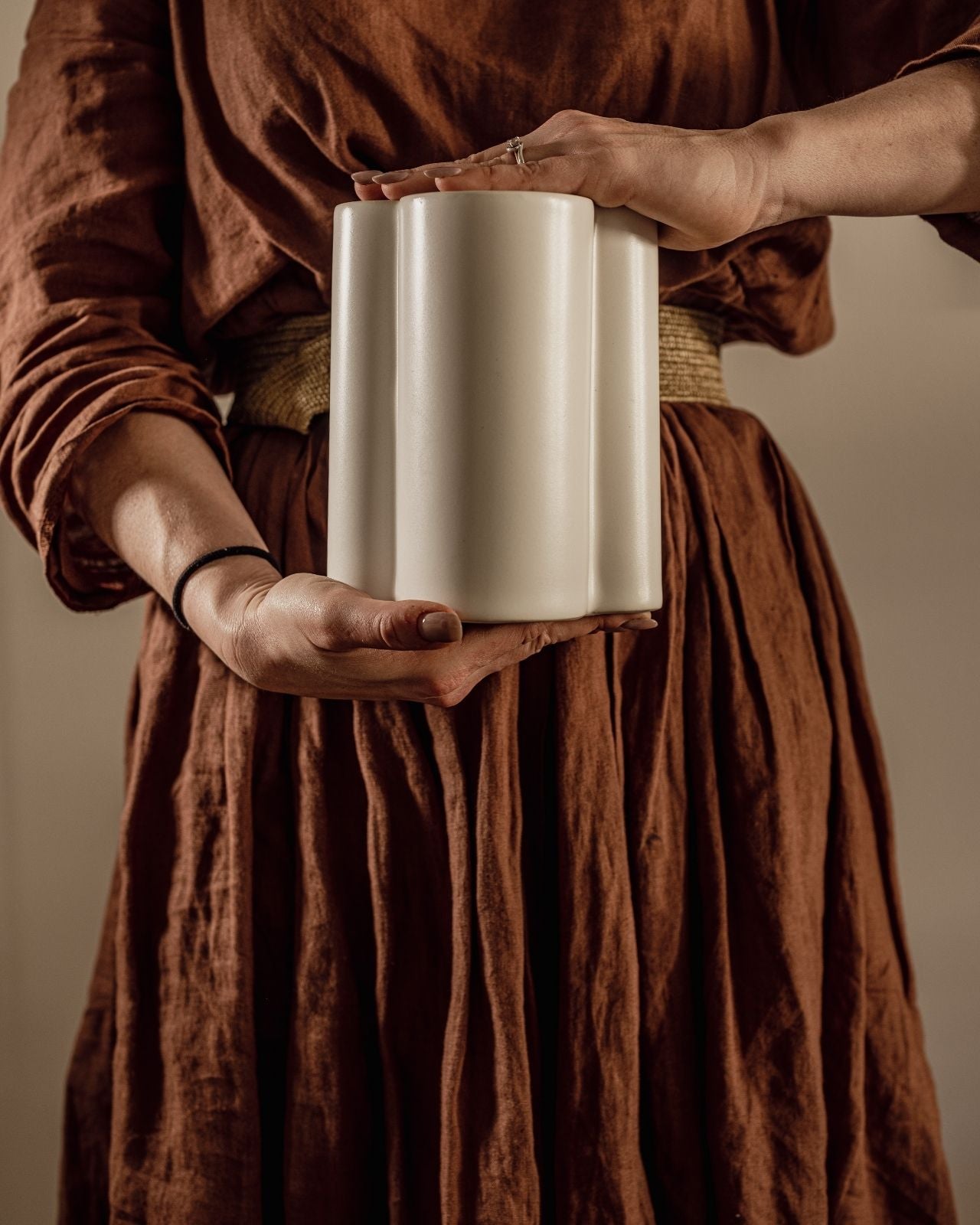 Hands Holding Handmade Curved Clay Wall Light | Cloud
