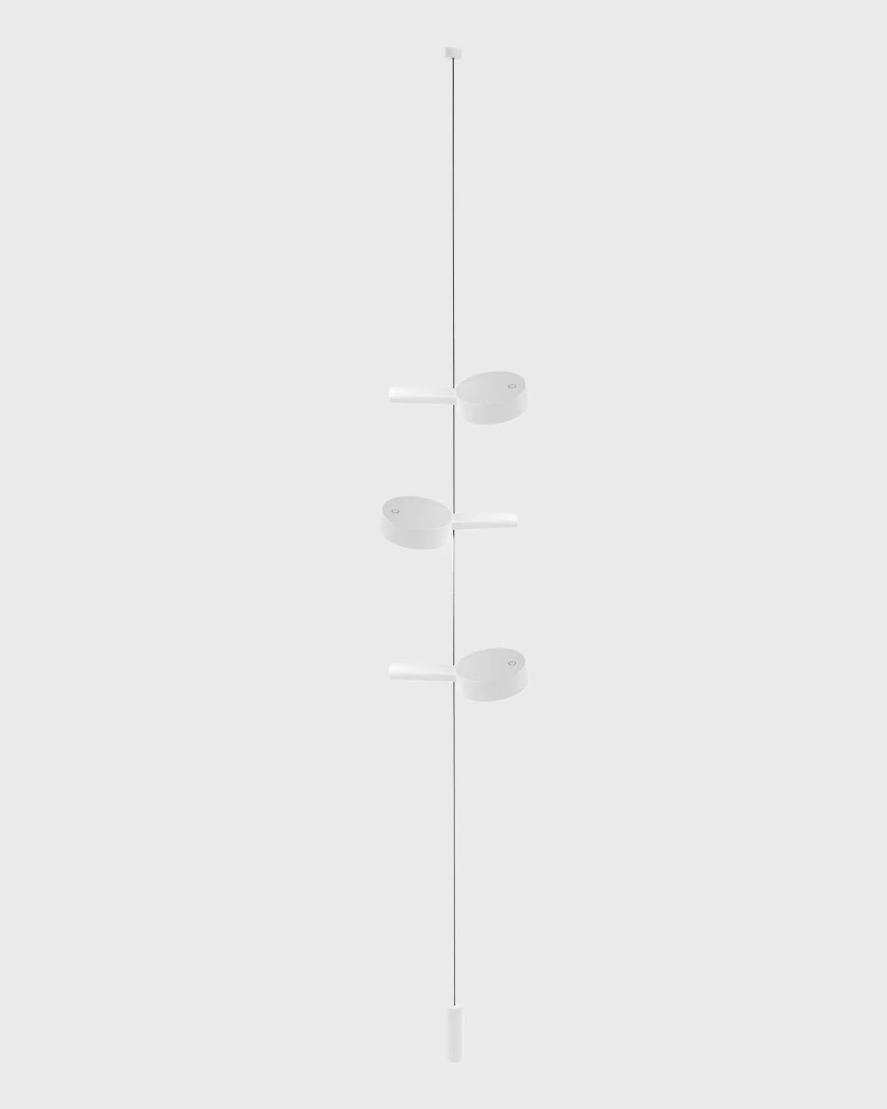 The Rechargeable Pendant & Floor Lamp is a sleek and versatile lighting solution featuring a suspension that attaches to both the ceiling and floor for a clean, modern aesthetic. Its detachable LED modules connect effortlessly to the suspension through magnets, allowing for easy installation. Available in black or white finishes with an IP65 rating, it complements a variety of styles while providing adjustable lighting ideal for outdoor areas, dining areas, or workspaces. Includes charging base.