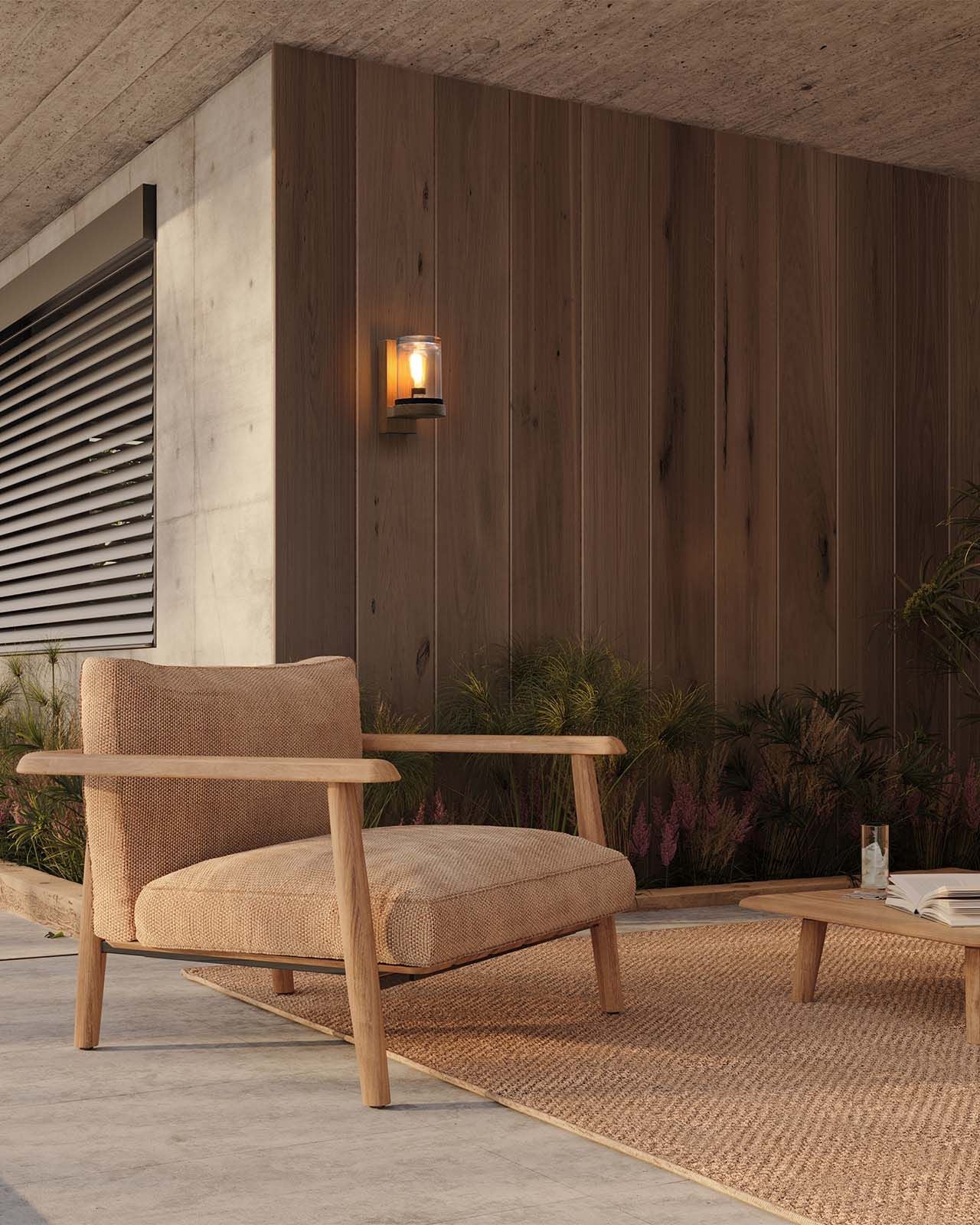 The Teak Platform Wall Sconce is a unique outdoor wall fixture made of teak and glass. With a simple design and compact size, it is an excellent choice for outdoor entertaining spaces. Made with top-quality materials for exterior lighting, this fixture has a weather-resistant rating of IP54, making it suitable for both residential and commercial properties.