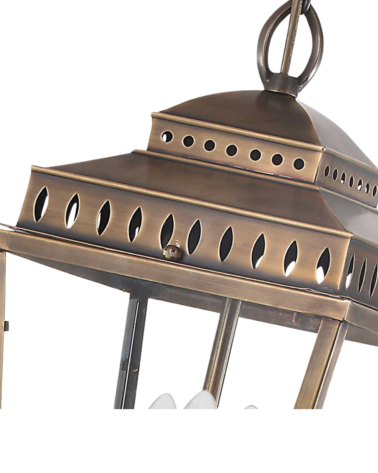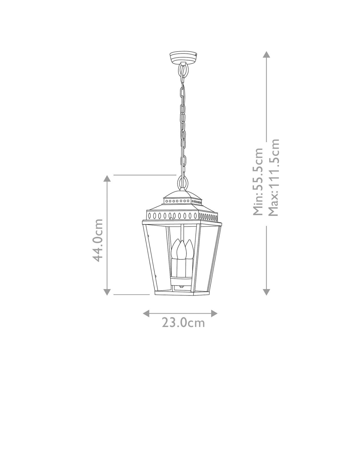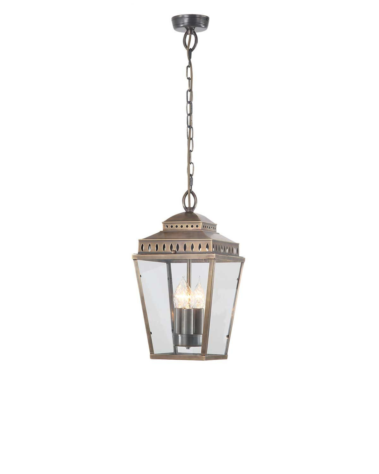 This solid brass lantern's design has been taken from originals dating back to pre-Georgian Britain and will add the perfect finishing touch of class to any exterior space. Made from brass and clear glass this IP44 rated pendant is suspended by an 895mm chain and has been lacquered to ensure durability from environmental elements.