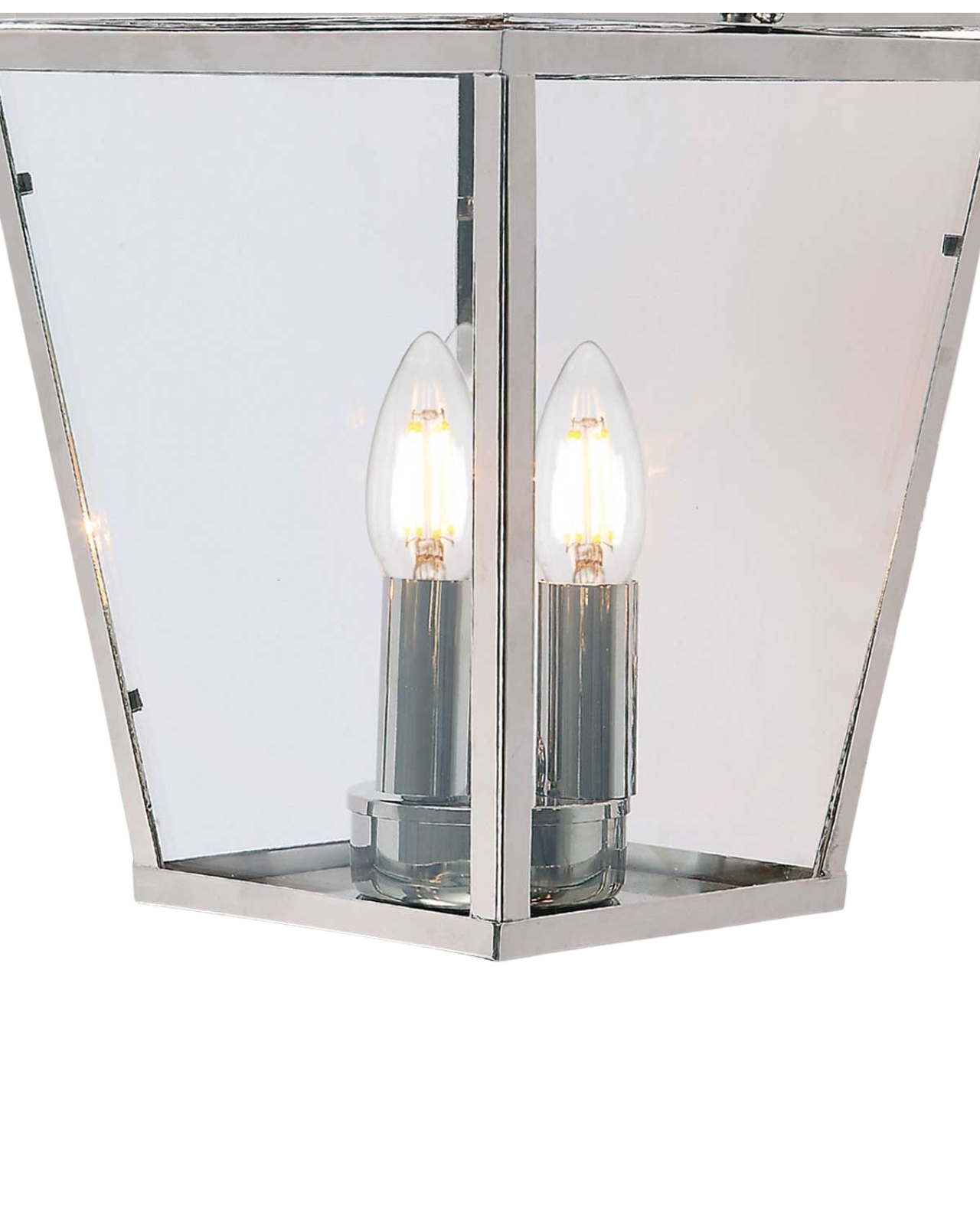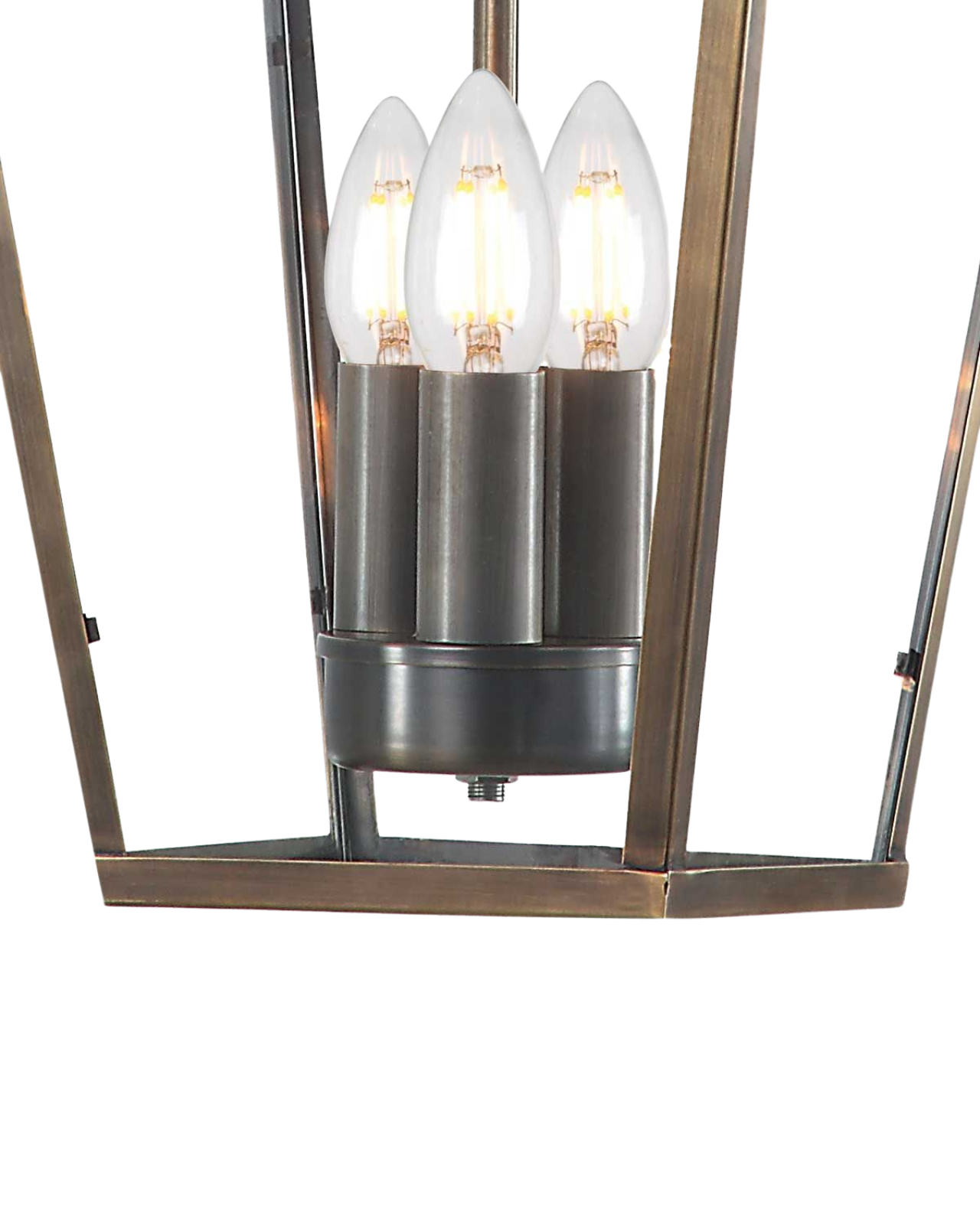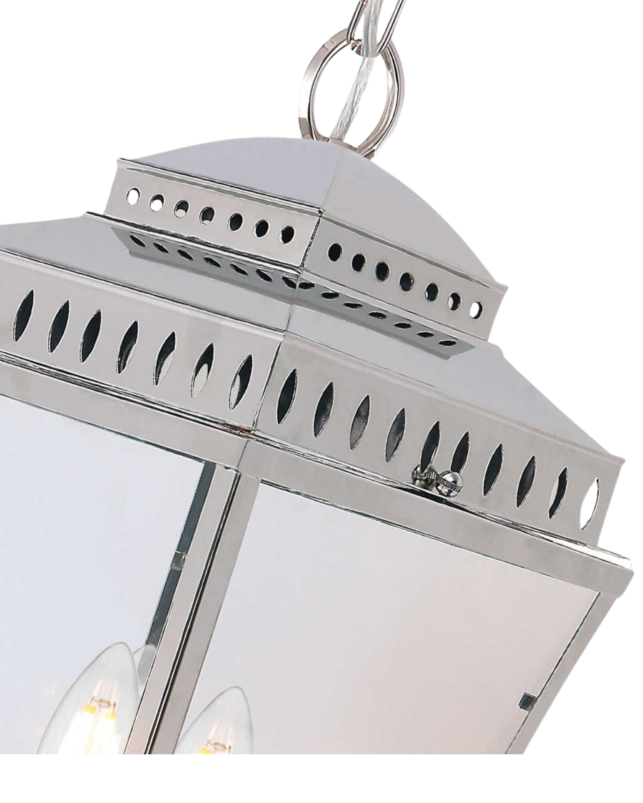 This solid brass lantern's design has been taken from originals dating back to pre-Georgian Britain and will add the perfect finishing touch of class to any exterior space. Made from brass and clear glass this IP44 rated pendant is suspended by an 895mm chain and has been lacquered to ensure durability from environmental elements.