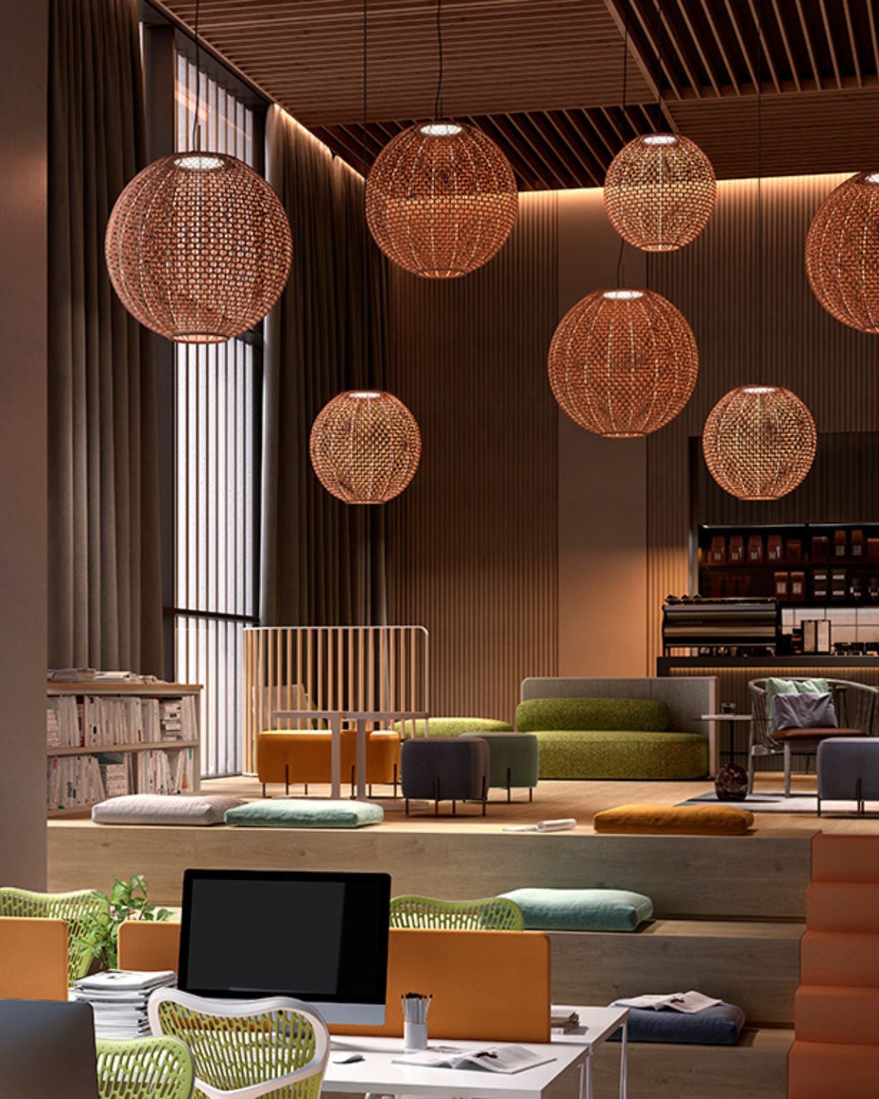 Exterior Mediterranean Woven Orb Pendant - Large / Red
