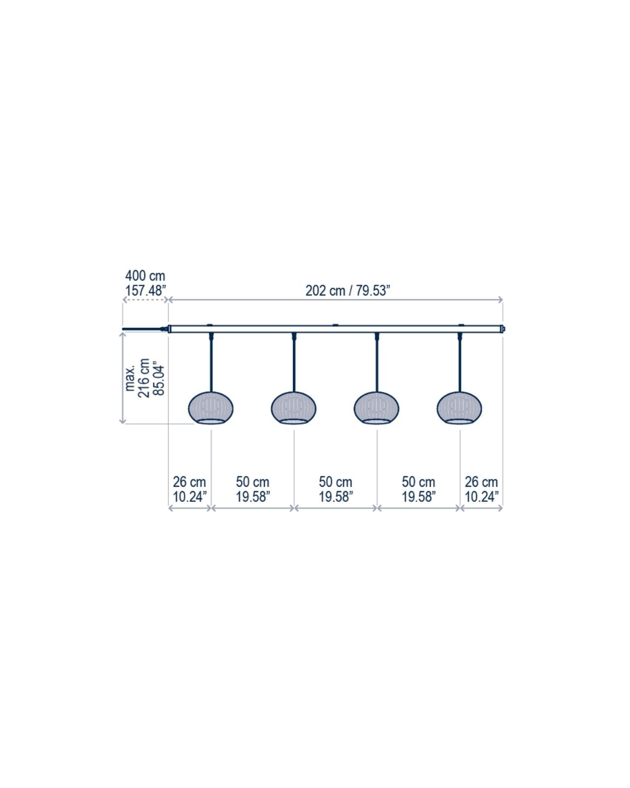 Crafted in Barcelona, the Exterior Orb Pendant Track Light brings a sculptural elegance to outdoor environments. Designed to suspend from an exterior-rated track system, the orb-shaped pendants can be positioned or reconfigured along the rail, allowing tailored illumination across terraces, pergolas, and covered walkways. Its smooth, rounded form and meticulous craftsmanship create a soft yet architectural presence, complementing both modern and timeless exterior schemes.