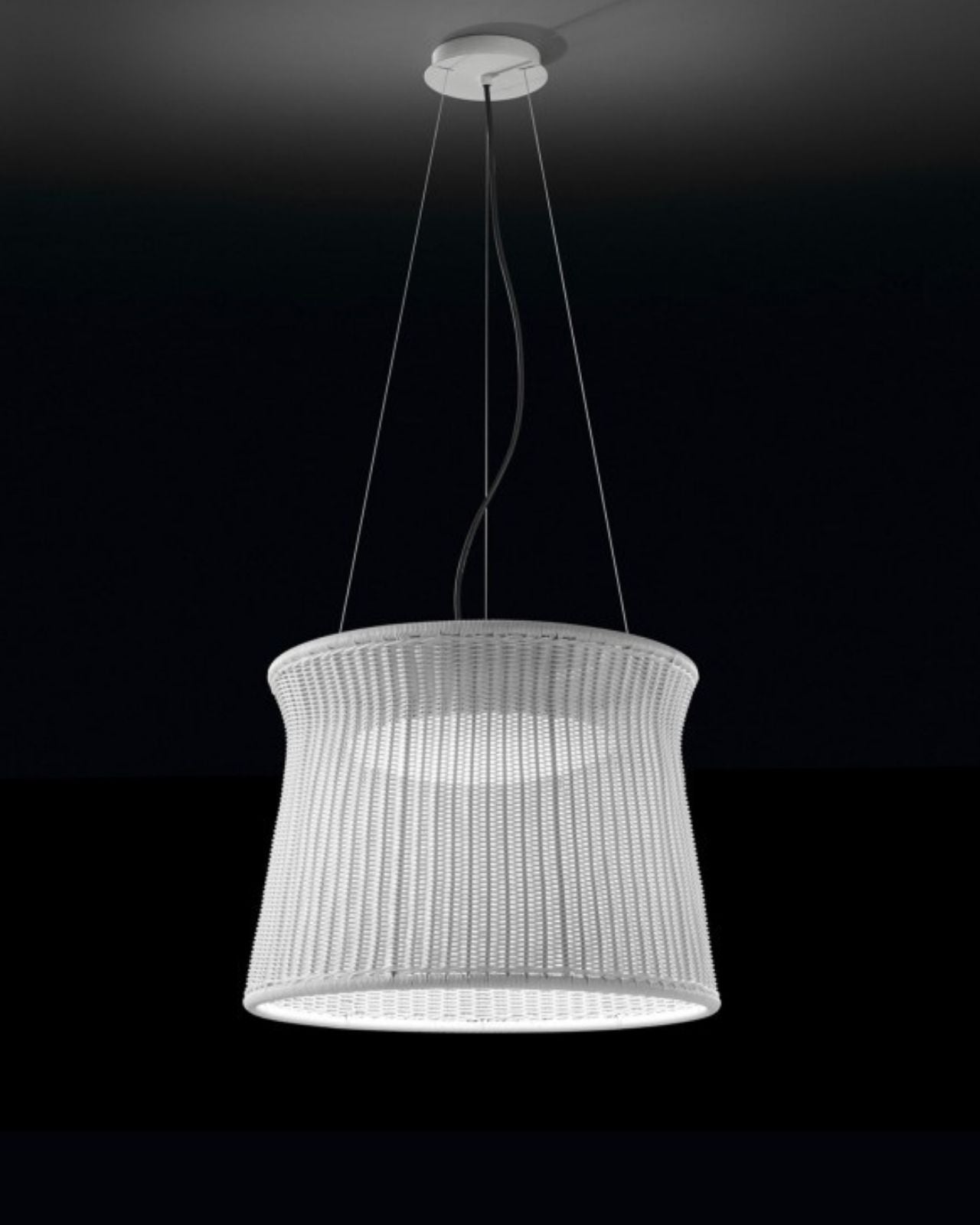 The Woven Basket LED Pendant, designed and crafted in Barcelona, boasts an asymmetrical shade that serves as an eye-catching focal point. An opal glass panel diffuses the integrated LED, while the hand-woven synthetic fibre shade allows light to gently filter through its gaps, creating captivating shadows and a warm 2700K glow. With an IP rating of IP66, this fitting is ideal for exterior areas.