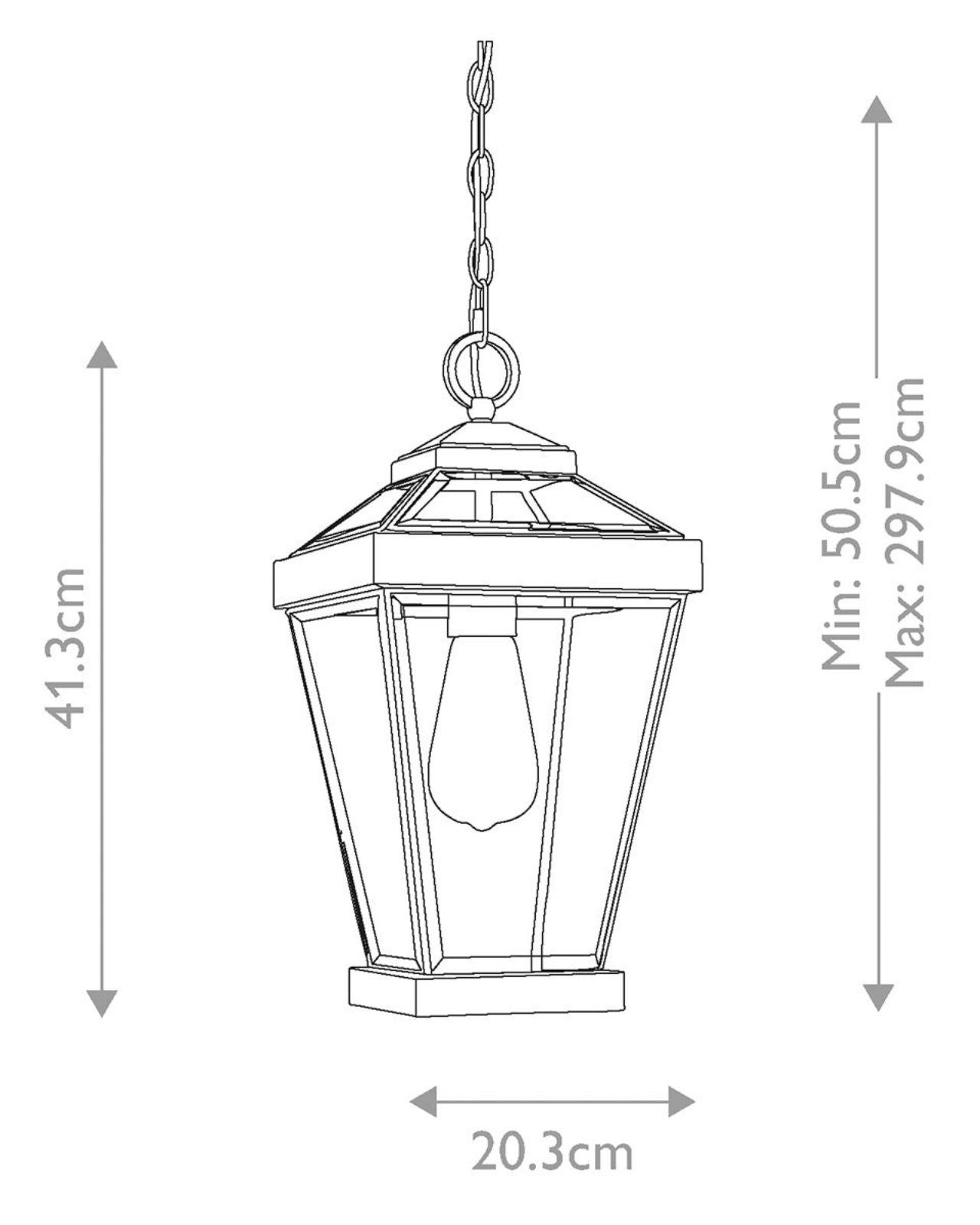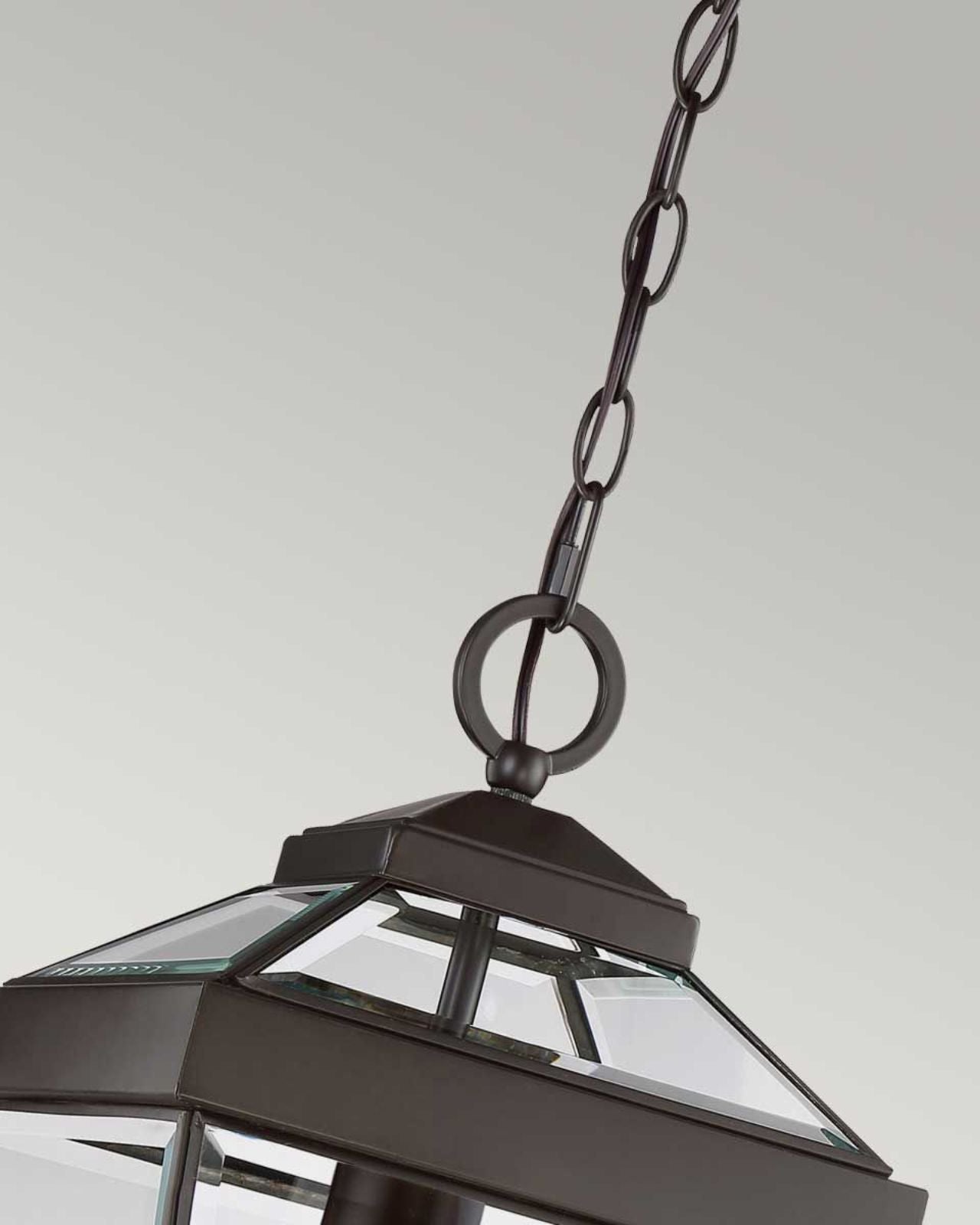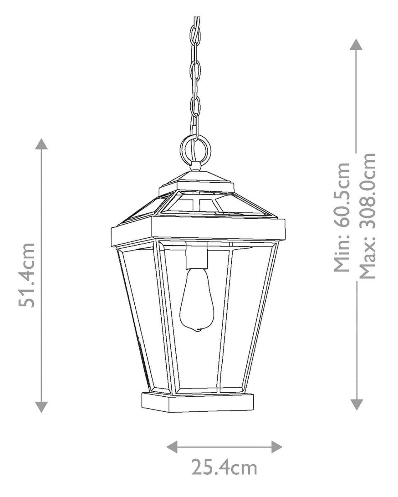 Made from metal with a rich Western Bronze finish, this sophisticated and modern pendant light will be stunning in your outdoor environments. IP44 rated, this fixture is weather proof and rain safe and is suspended by an adjustable chain which makes it perfect to hang in cover porches or terraces. The lantern features clear bevelled glass panels on the sides and at the top of it so it nicely lightens up your exterior.