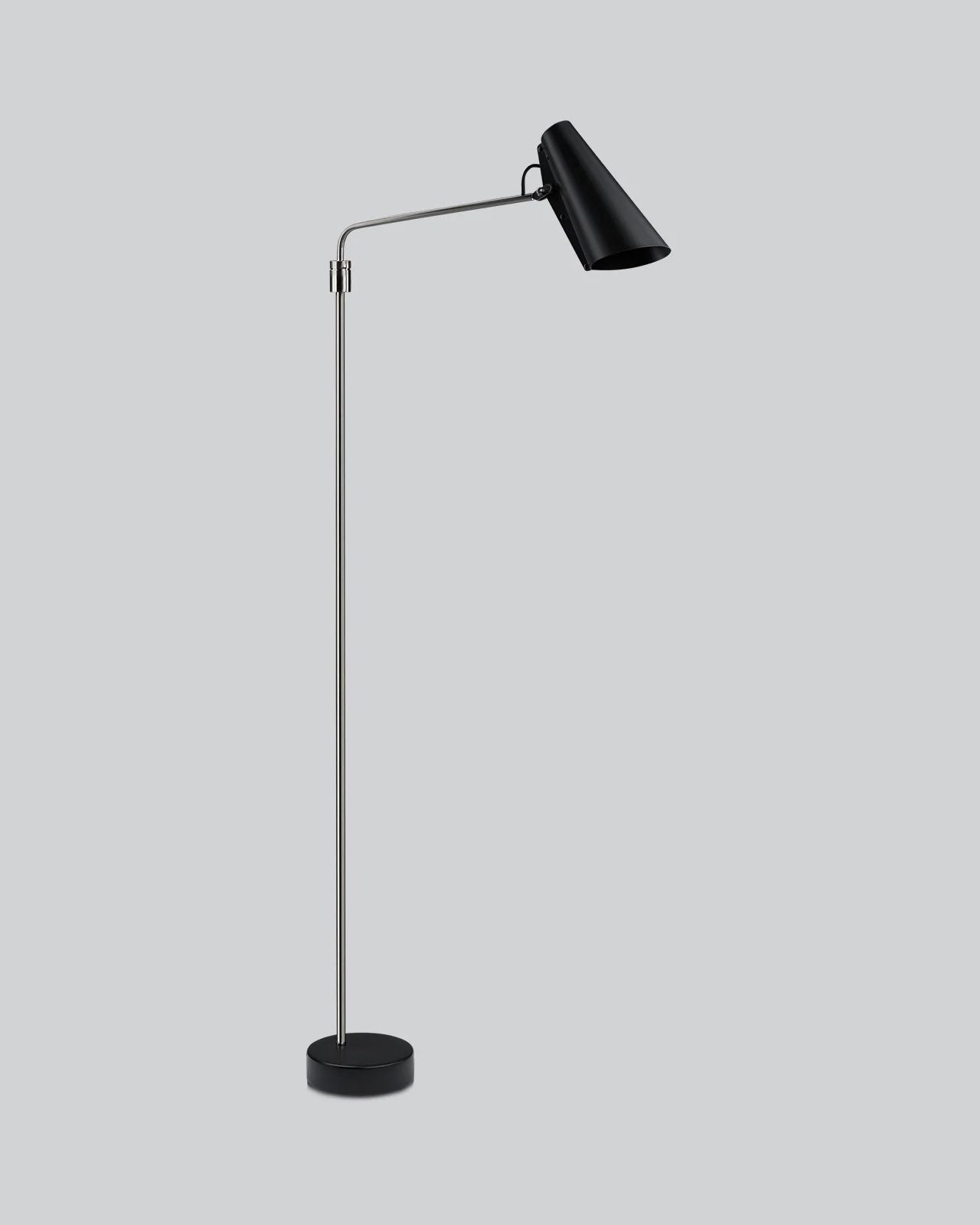 The Mid-Century Style Floor Lamp is a sleek and minimal black floor lamp with a modern, functional design. It features a slim metal frame and a cone-shaped adjustable shade, perfect for directing light exactly where it is needed. The arm extends outward at a right angle, giving the lamp a geometric, architectural edge. Finished in matte black, the lamp has a clean, contemporary look that complements minimalist, industrial, or Scandinavian interiors. Ideal for use beside a sofa, reading chair, or desk, this lamp offers focused illumination without sacrificing style.