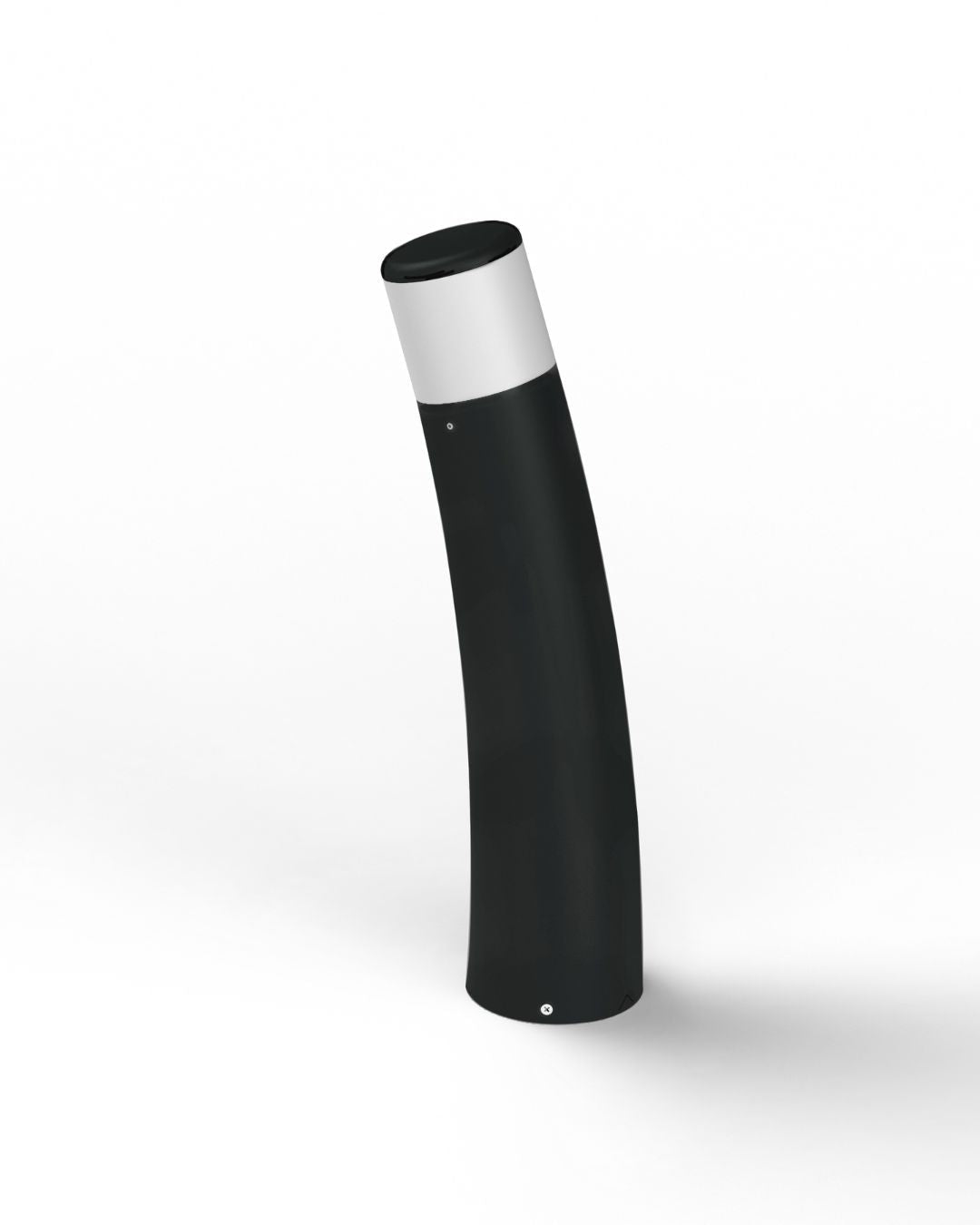 Unique and modern exterior bollard collection made in France. Available in nine colours, these funky outdoor lights are sure to add an eclectic twist to commercial or residential exteriors. Influenced by natural forms, the design of the curved cylindrical body is inspired by bamboo; topped with a rotatable head and your choice of clear or opal polycarbonate diffuser.