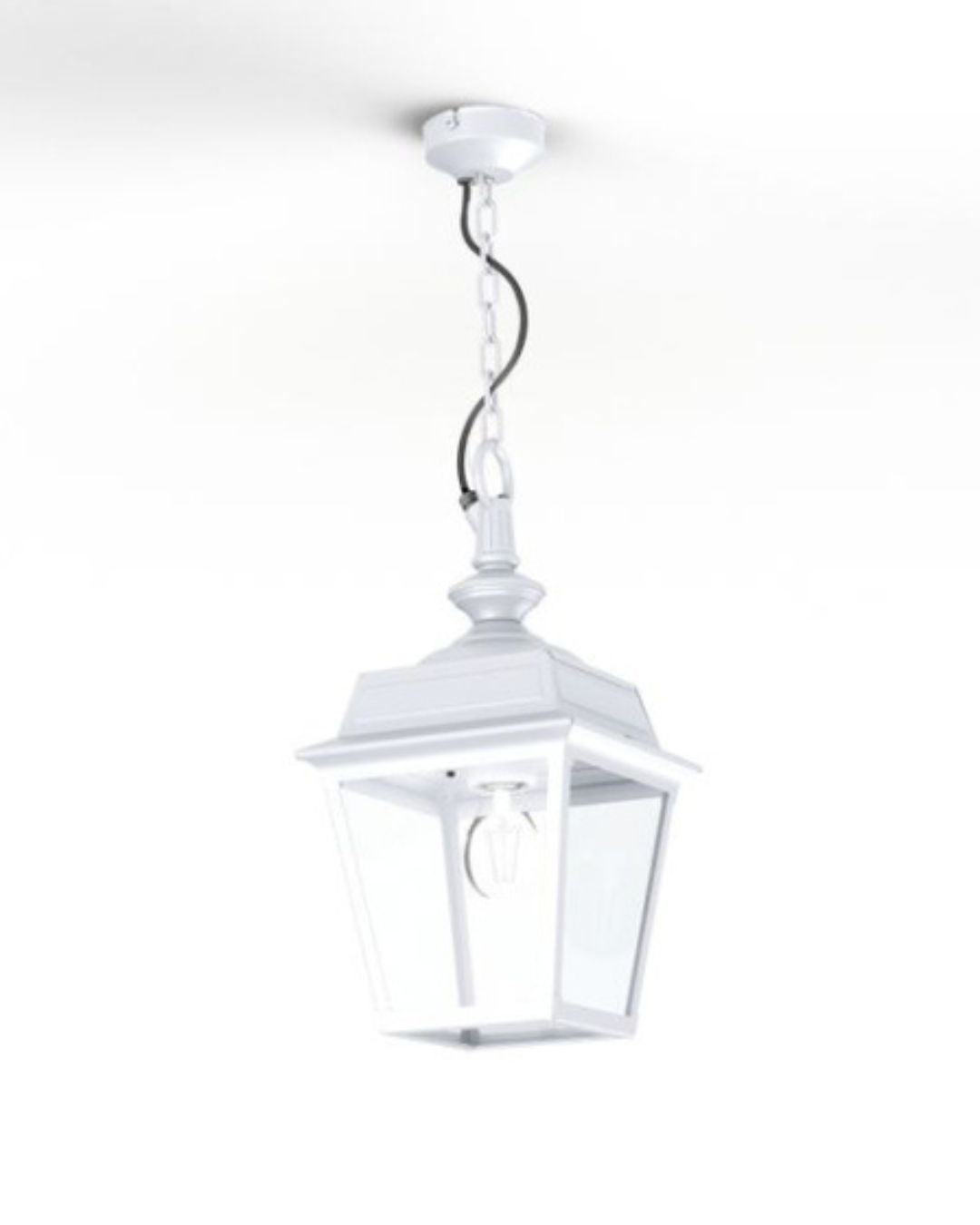 Traditional Chain Lantern Pendant - Clear / White