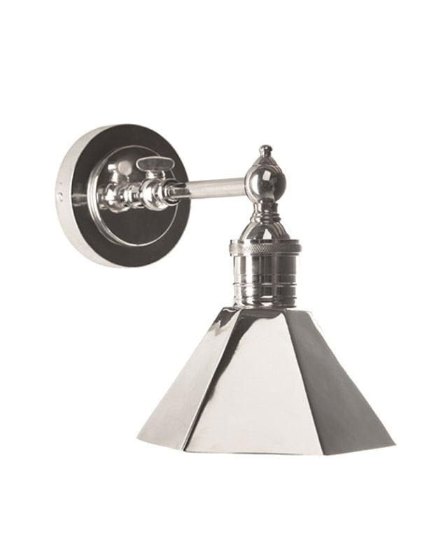 This traditional style wall sconce is a classic design that is highlighted by the metal pyramid shade and intricate detailing. This is a quality product that is compatible with LED globes for energy efficiency. This design is available in a nickel, solid brass or silver finish.