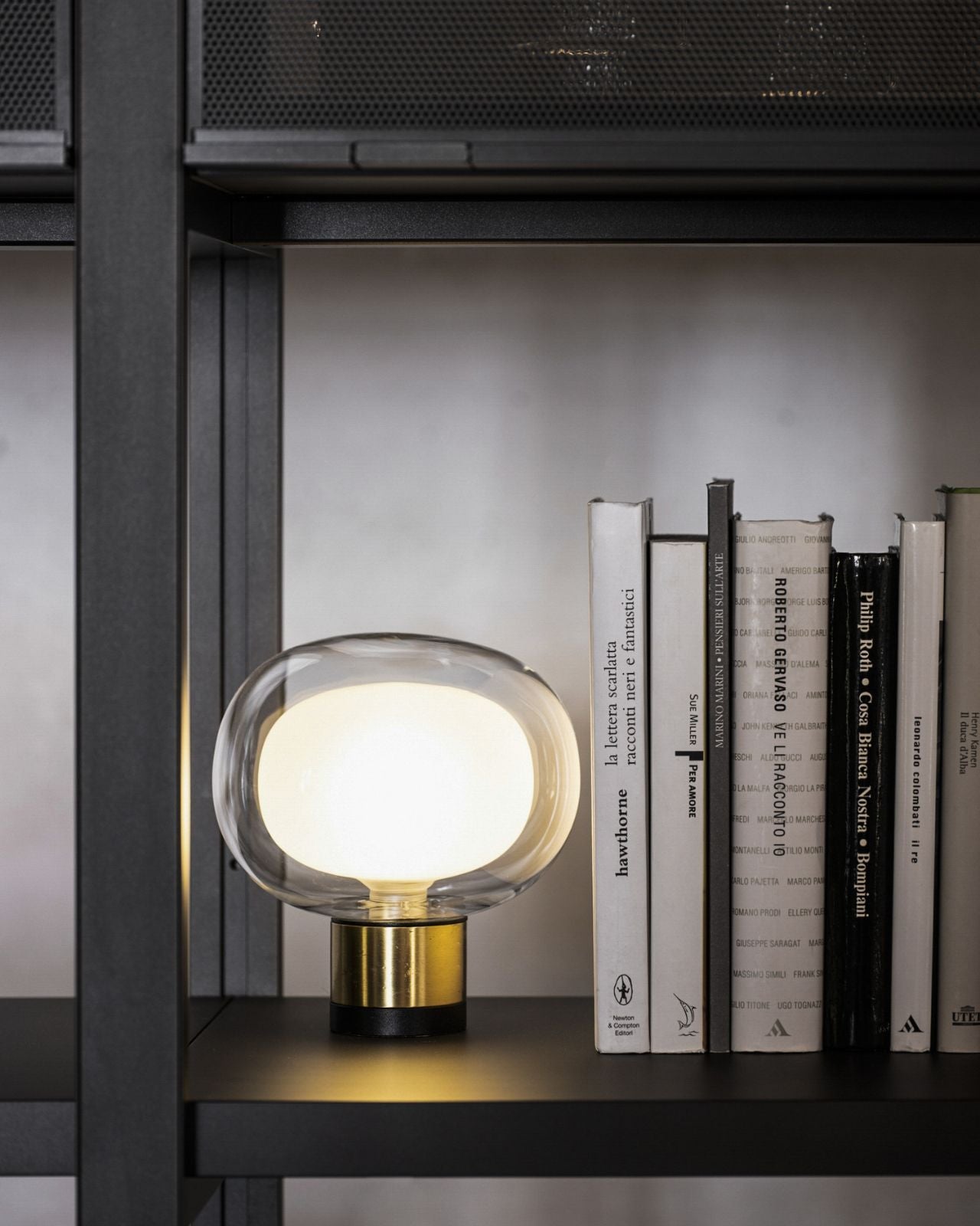 The Layered Glass Short Table Lamp features a frosted diffuser encased in a Clear or Smoke glass shade with a Black Chrome or Brushed Brass detailing. This fitting can be used for functional lighting or for moody atmospheric light with a simple silhouette. The table lamp blends mid-century elegance with contemporary refinement, ideal for living rooms, bedrooms, or stylish workspaces.
