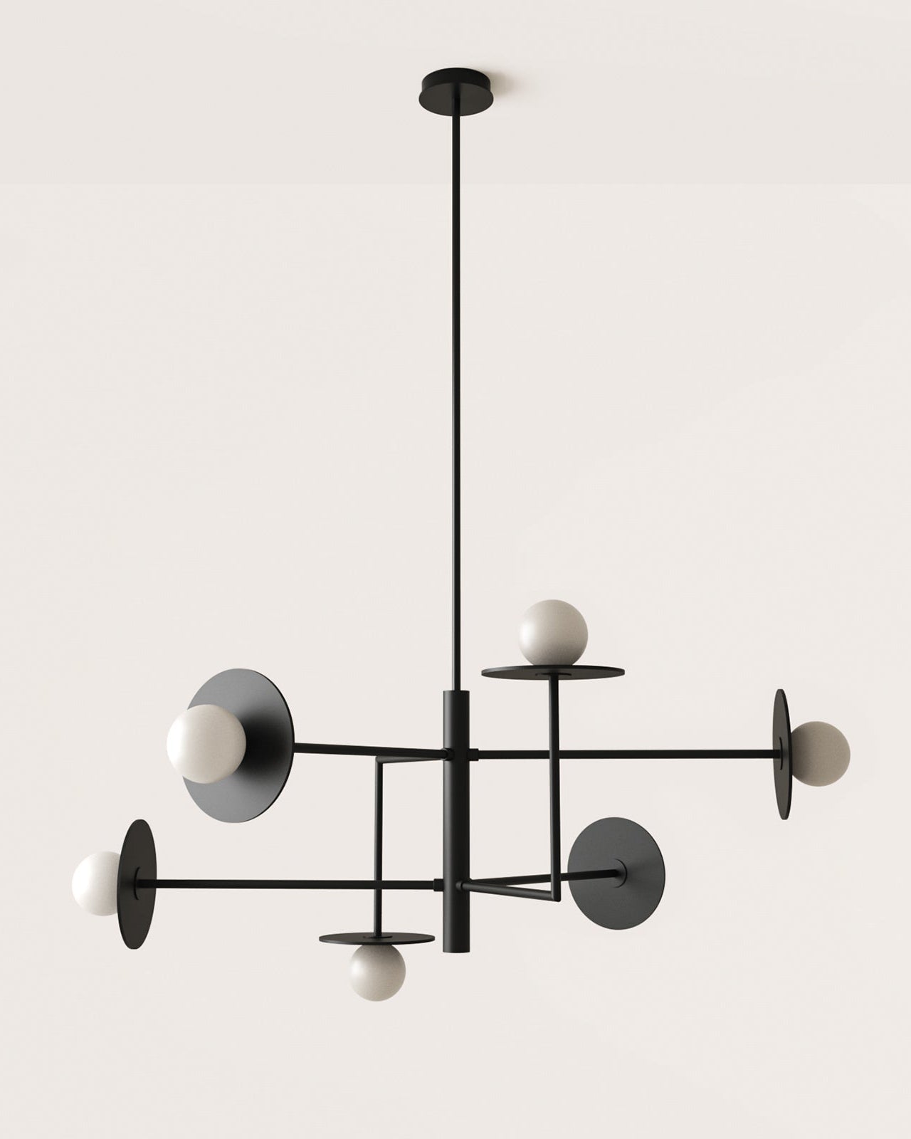 Featuring a constellation of suspended geometric forms, orbs, and discs, the Minimalist Orb Disc Chandelier is a striking balance of metal and glass. Its refined composition and sculptural presence create an impressive statement piece for modern interiors. Designed with precision and minimalism in mind, this chandelier is ideal for both residential and commercial settings from contemporary living rooms and dining areas to grand foyers and boutique spaces.