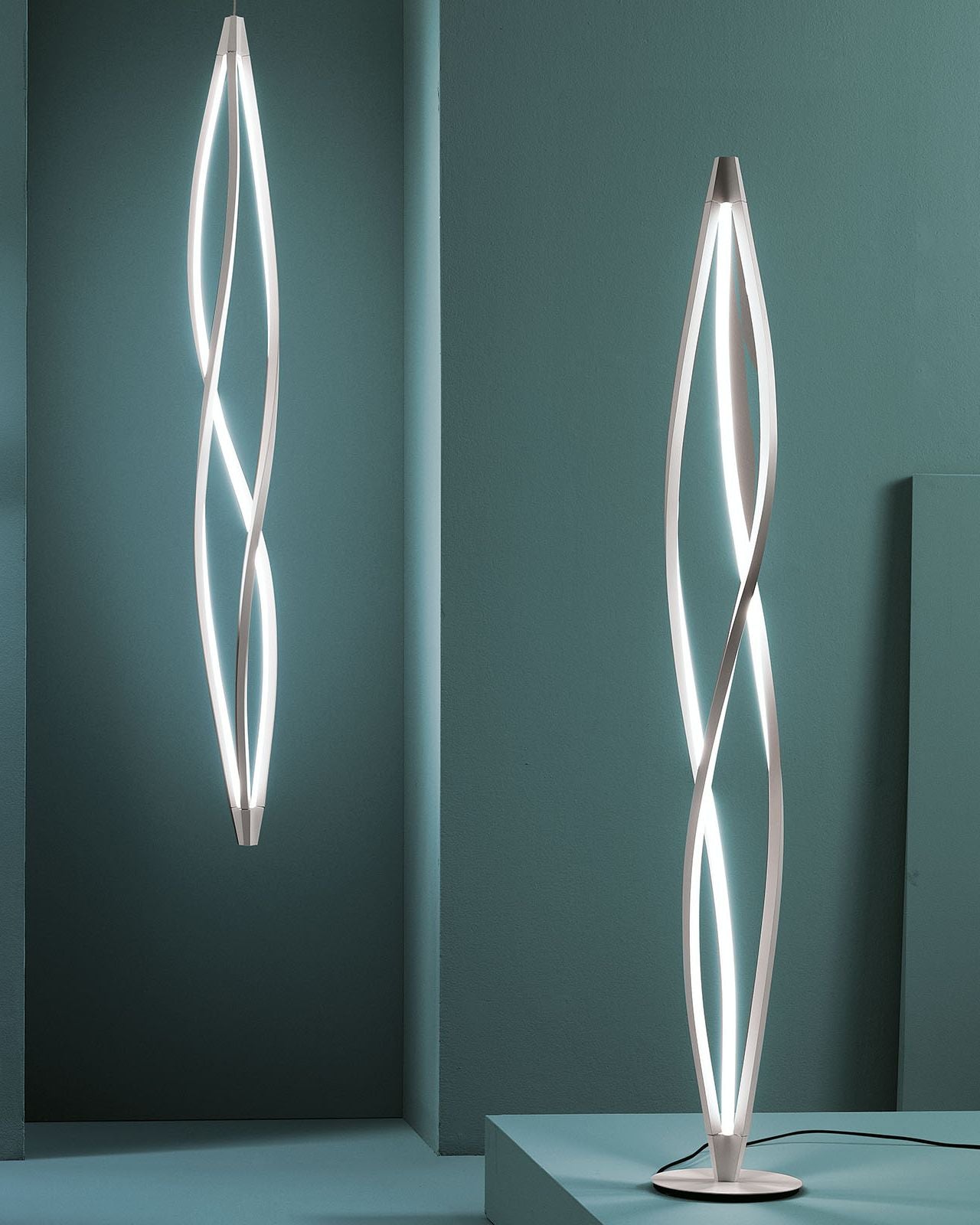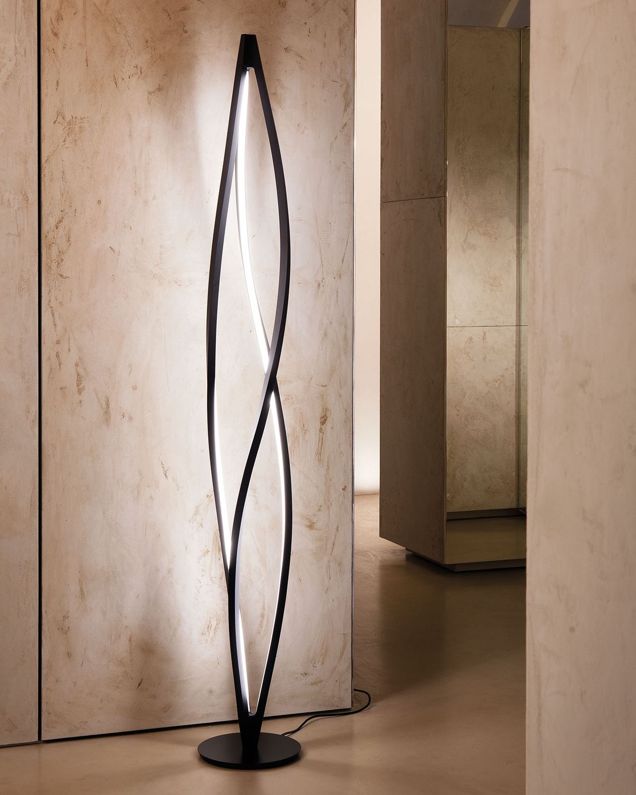 This stunning Modern Twirl Wind Floor Lamp features an organic design highlighted by graceful curves and symmetry, this floor lamp represents a new form in the evolution of LED technology. Its body is manufactured through a process of torsion and misalignment of an aluminum extruded bar, allowing full 360° illumination. In the Wind is perfect for use over in modern living rooms and bedrooms, and is also suitable for hospitality and commercial settings.
