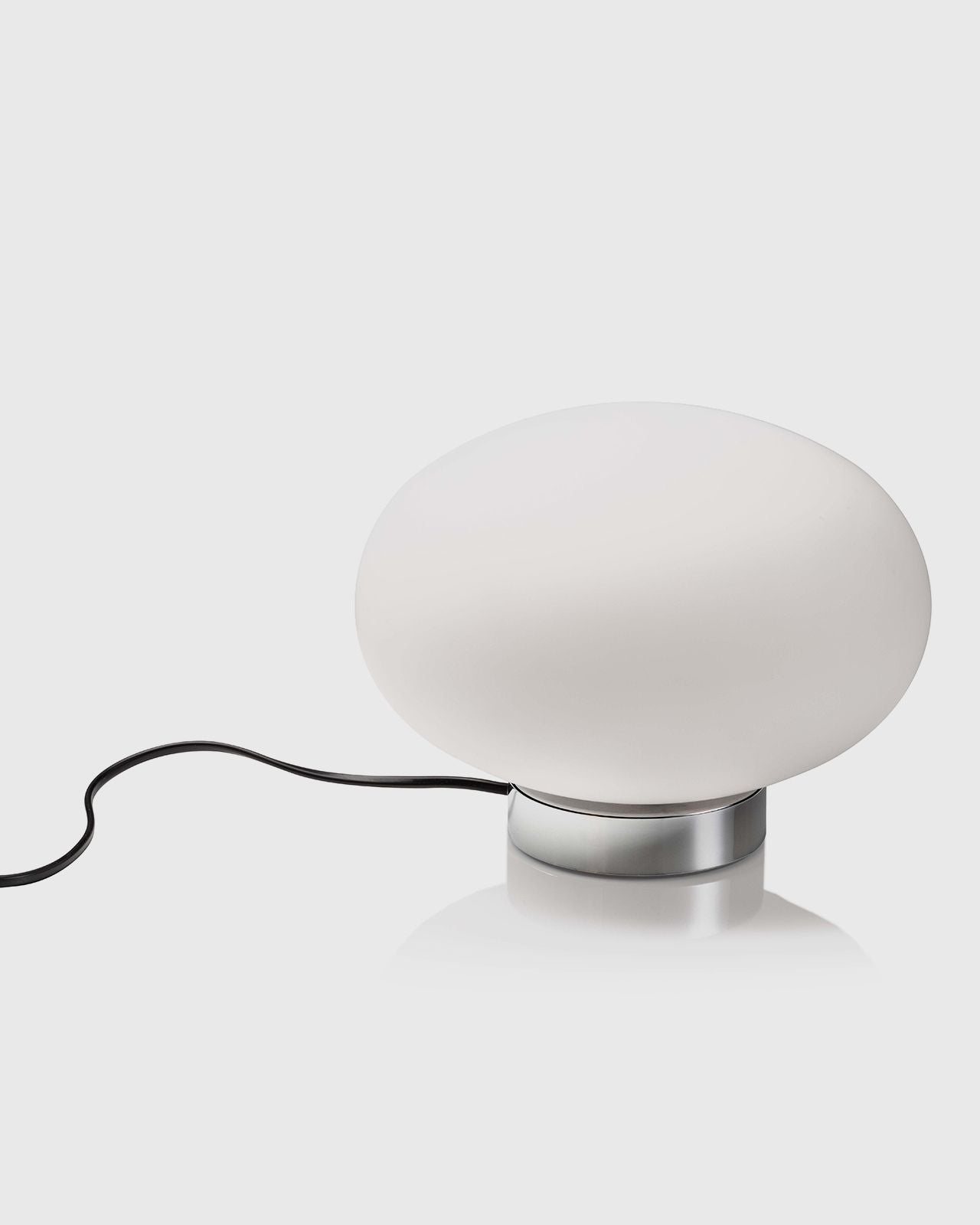 This Oval White Glass Table Lamp is a study in understated elegance and refined illumination. It features an elliptical opal-blown glass sphere that diffuses light gently and evenly, creating a soft, glare-free ambient glow that flatters any interior.