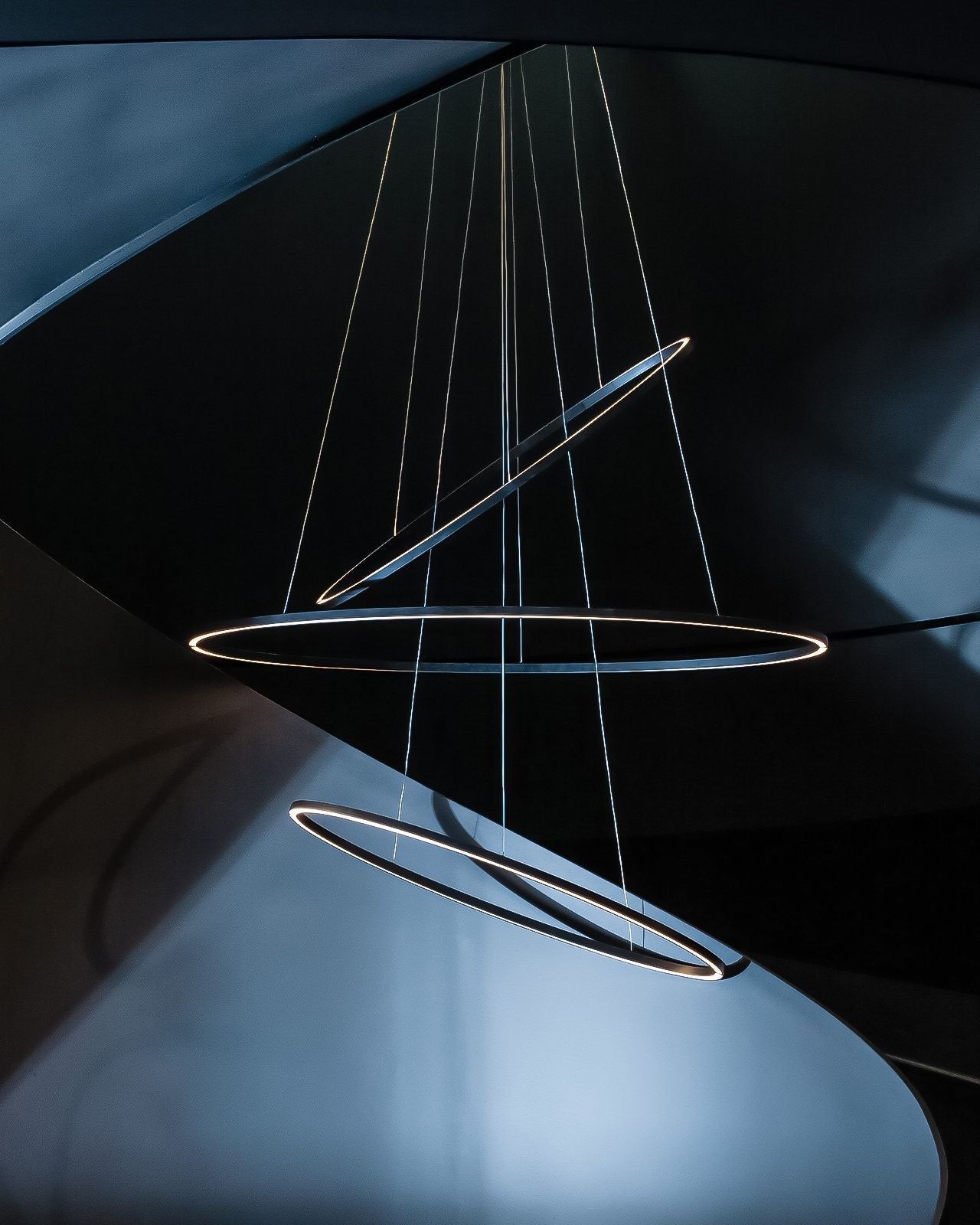 This beautiful pendant is crafted from extruded aluminium and is the perfect feature for modern space. Three, spherical forms of different sizes interact to create a unique and highly customisable light installation. Available in Gold or White.