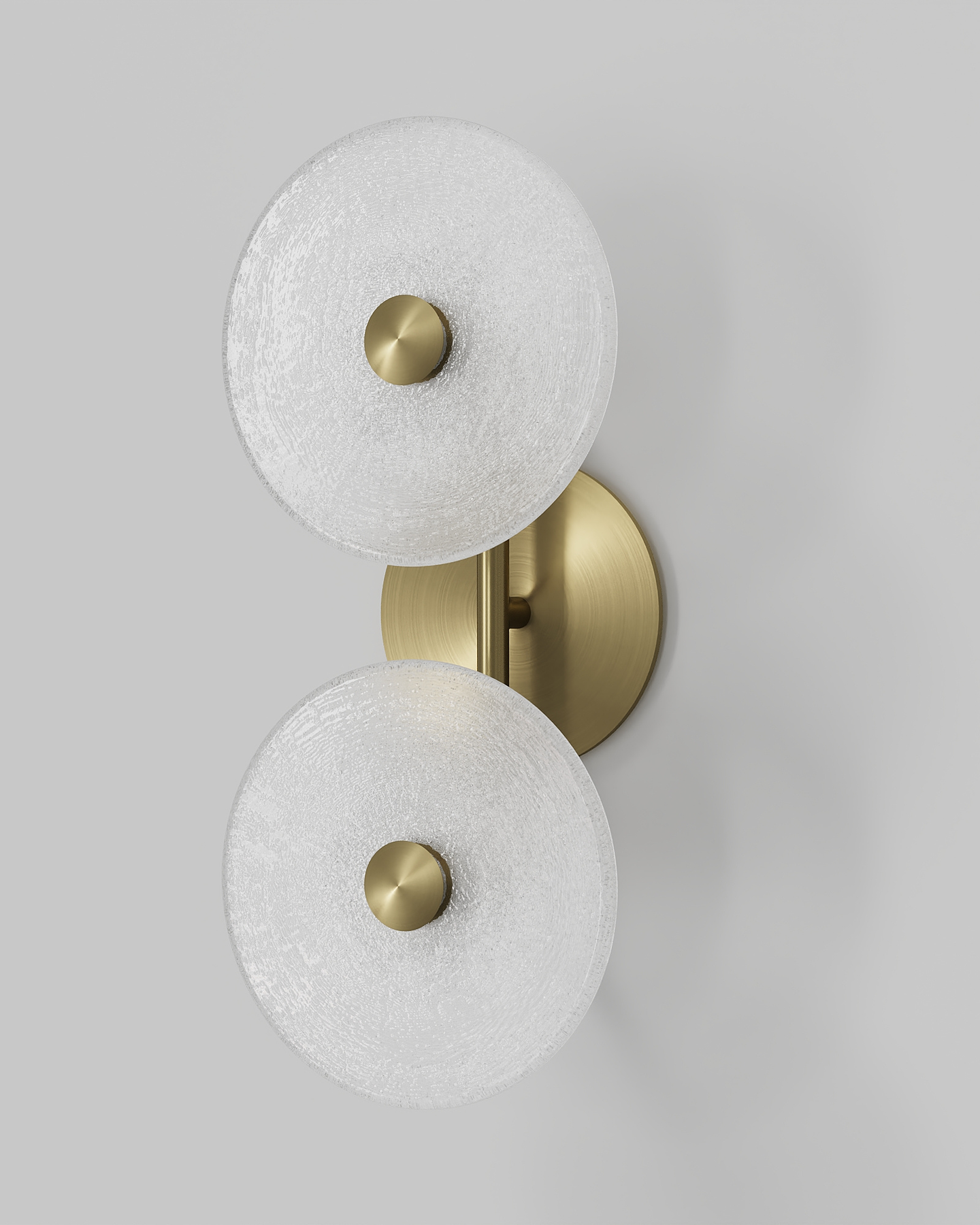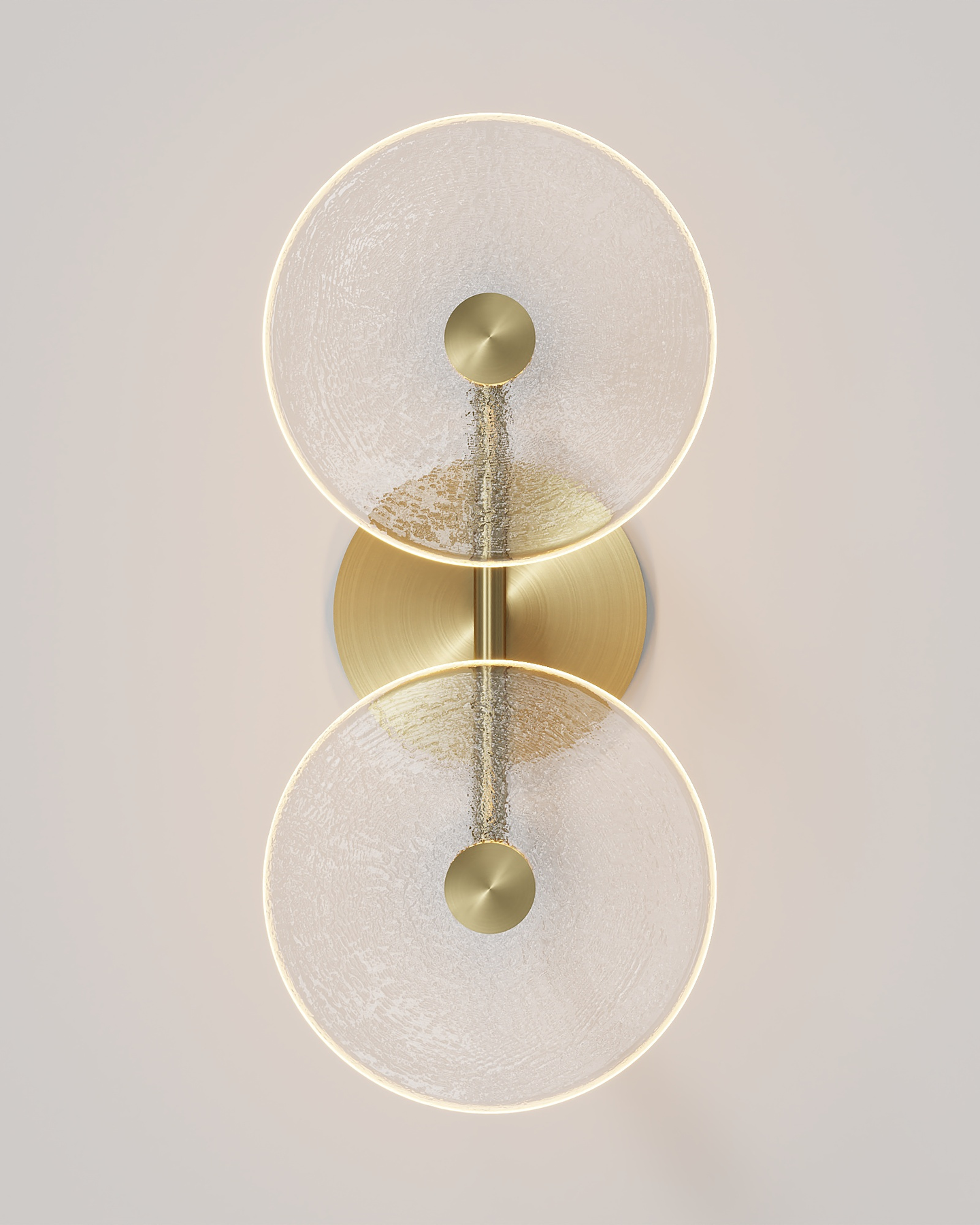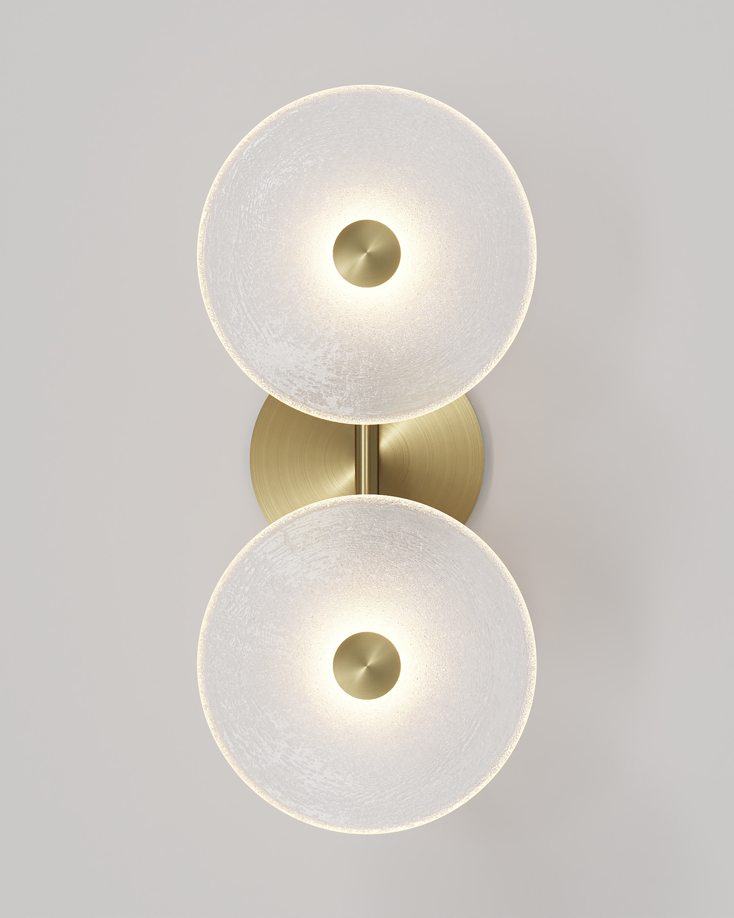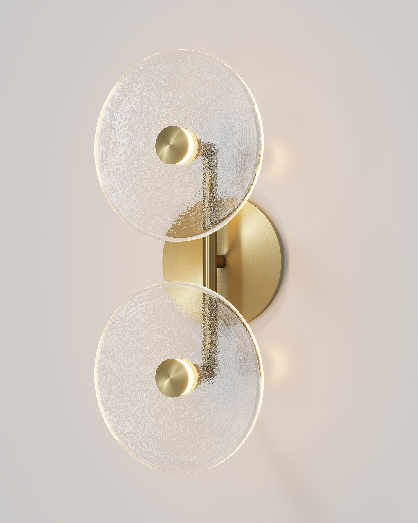 The Coral Duo Rod Wall Light, crafted and designed in Currumbin, Australia is a unique fitting made from two glass discs, mounted perpendicularly to a sleek rod. Available in Brass, Matte White, Matte Black, Steel and Medium Bronze, this fitting is versatile and suitable for a variety of contemporary interiors. Install a frosted glass fitting above a bedside table for a soft diffused light, or use the clear glass versions in clusters in a hallway for a more direct light.