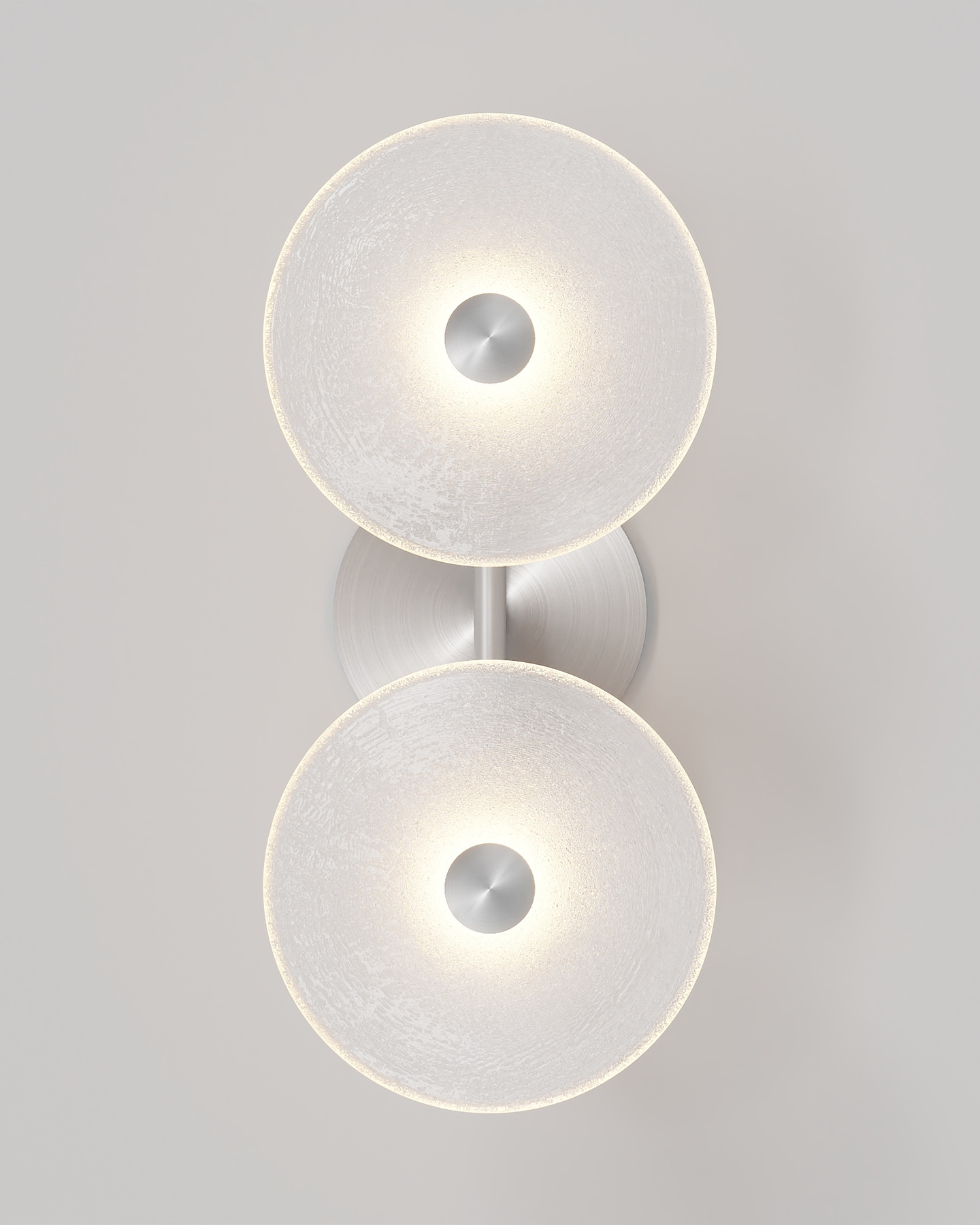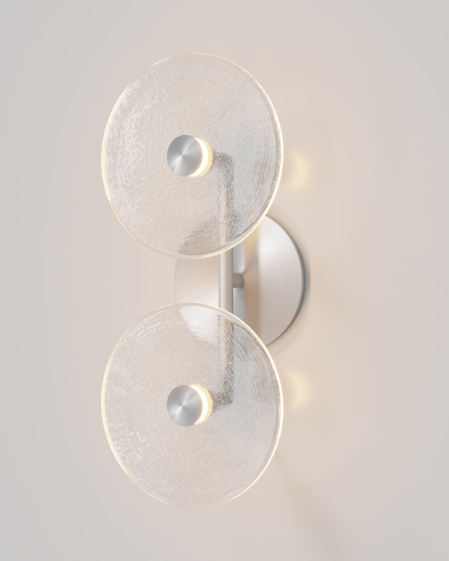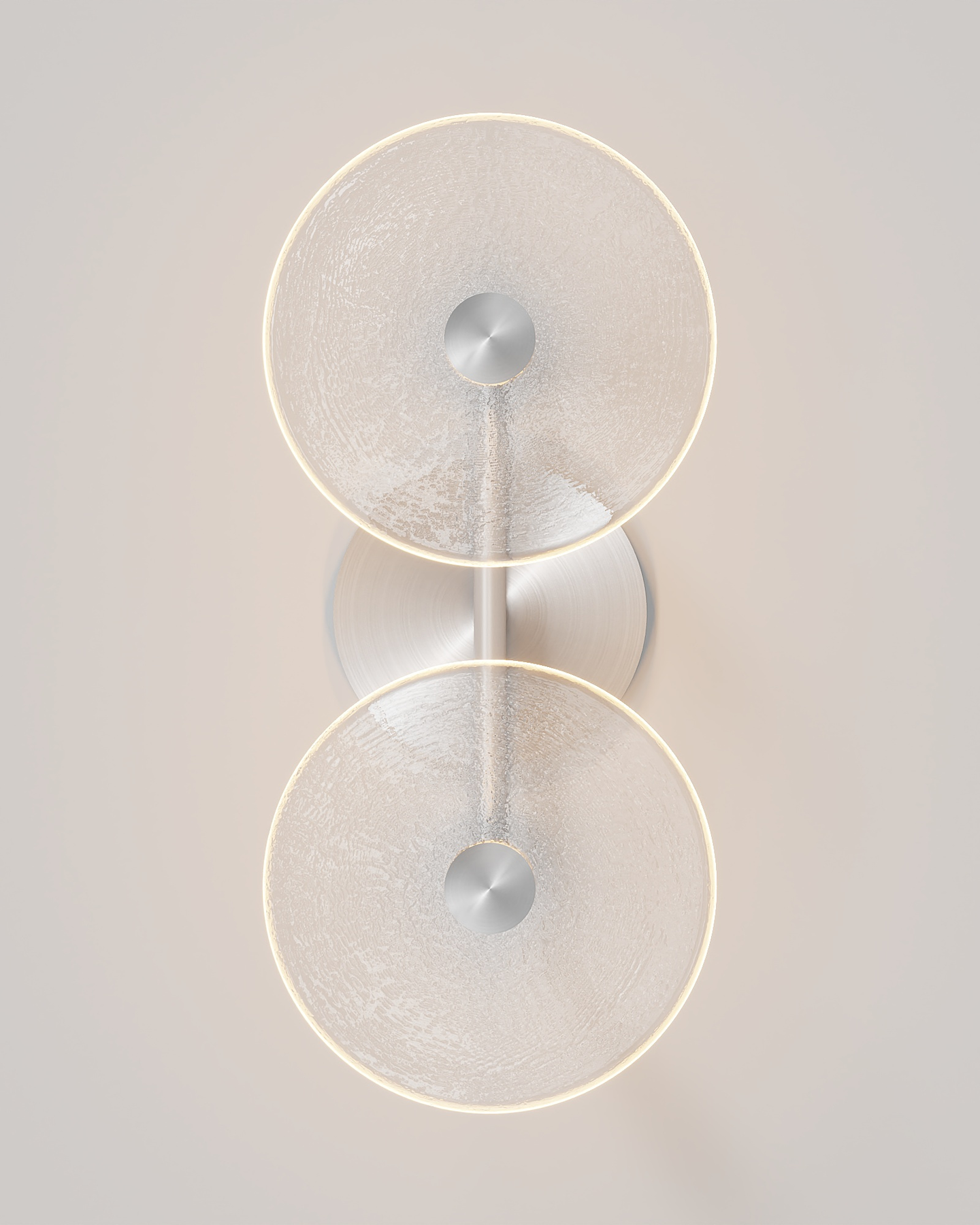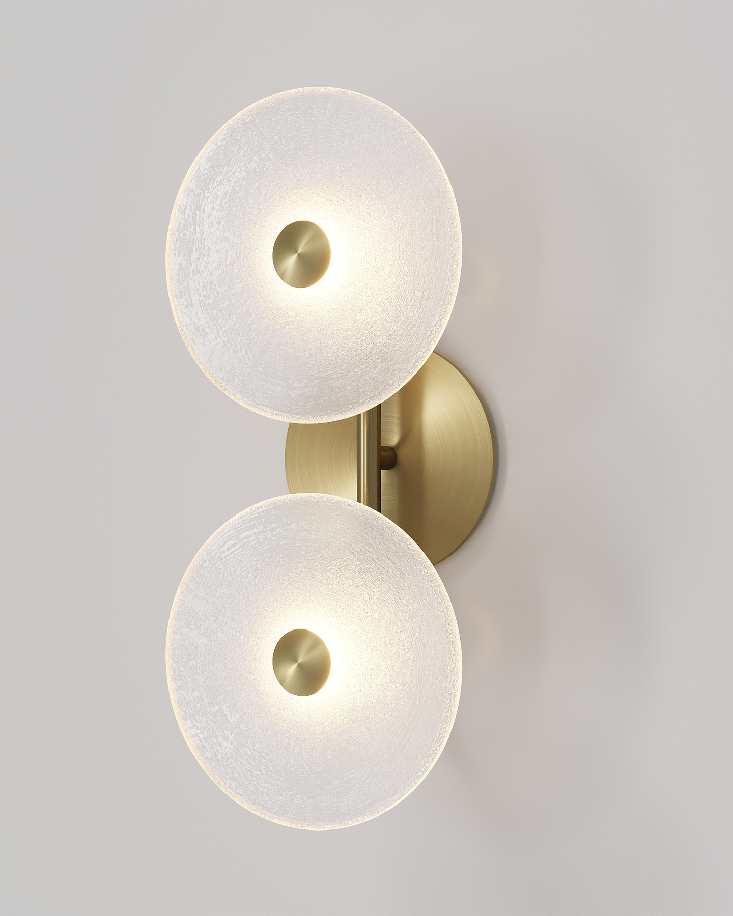 The Coral Duo Rod Wall Light, crafted and designed in Currumbin, Australia is a unique fitting made from two glass discs, mounted perpendicularly to a sleek rod. Available in Brass, Matte White, Matte Black, Steel and Medium Bronze, this fitting is versatile and suitable for a variety of contemporary interiors. Install a frosted glass fitting above a bedside table for a soft diffused light, or use the clear glass versions in clusters in a hallway for a more direct light.