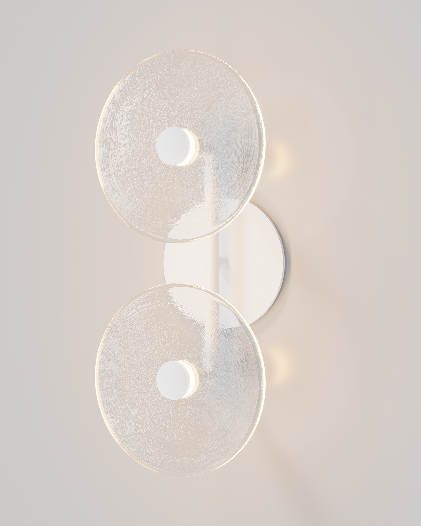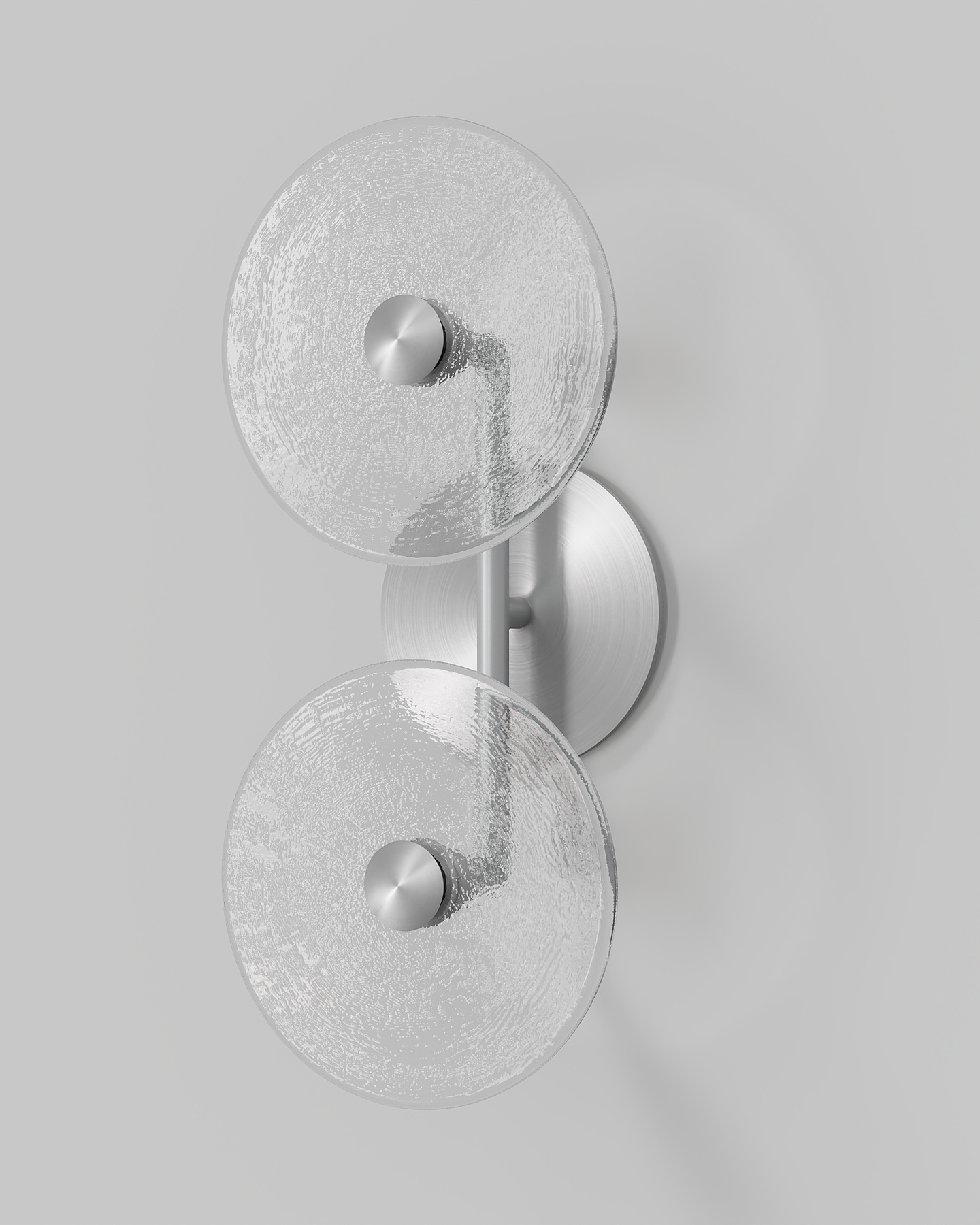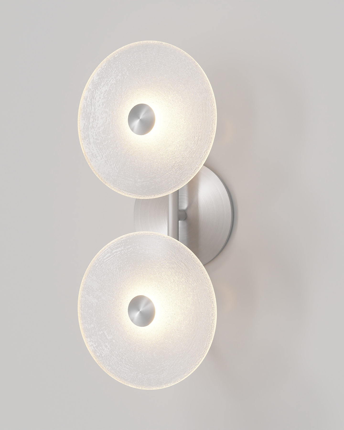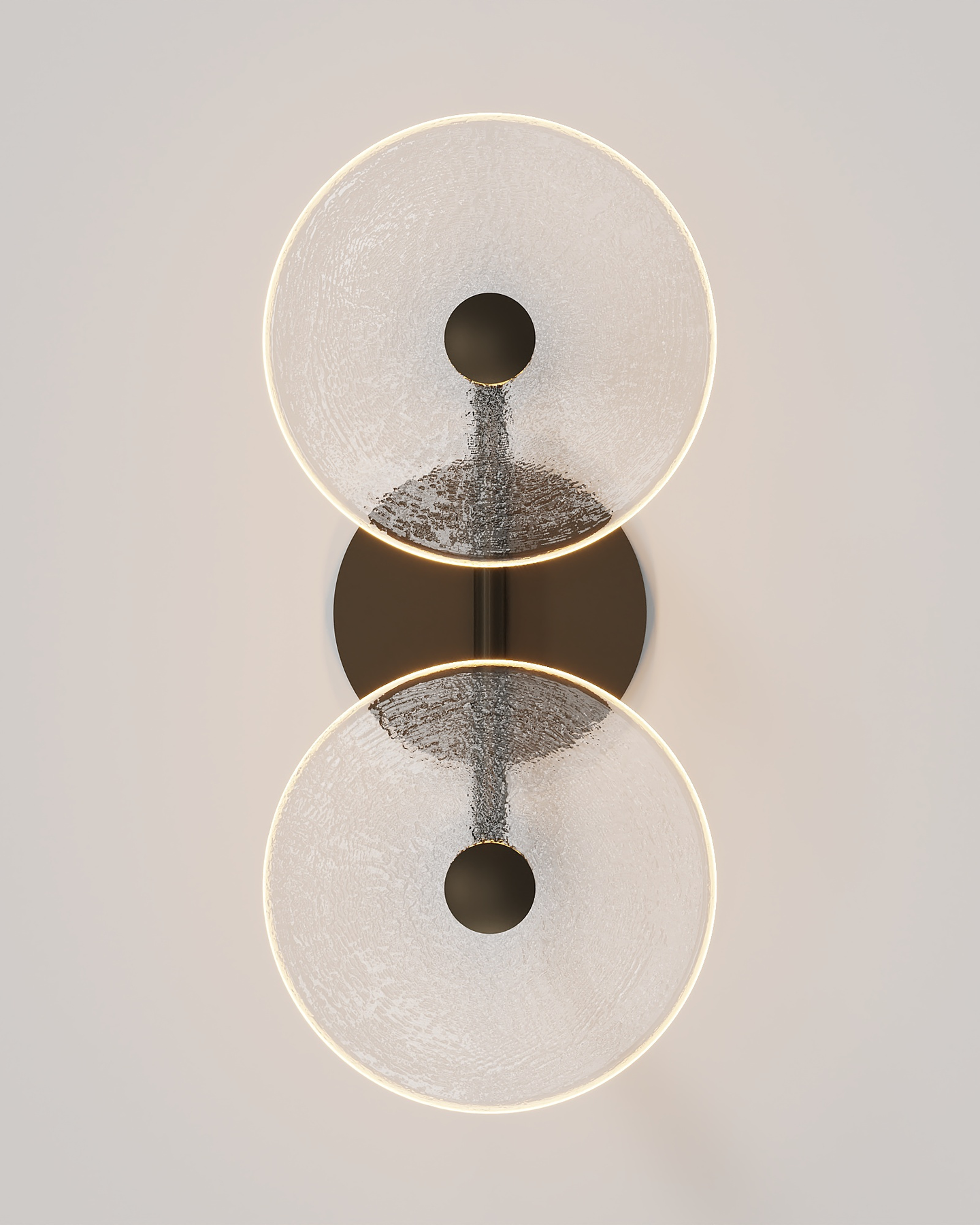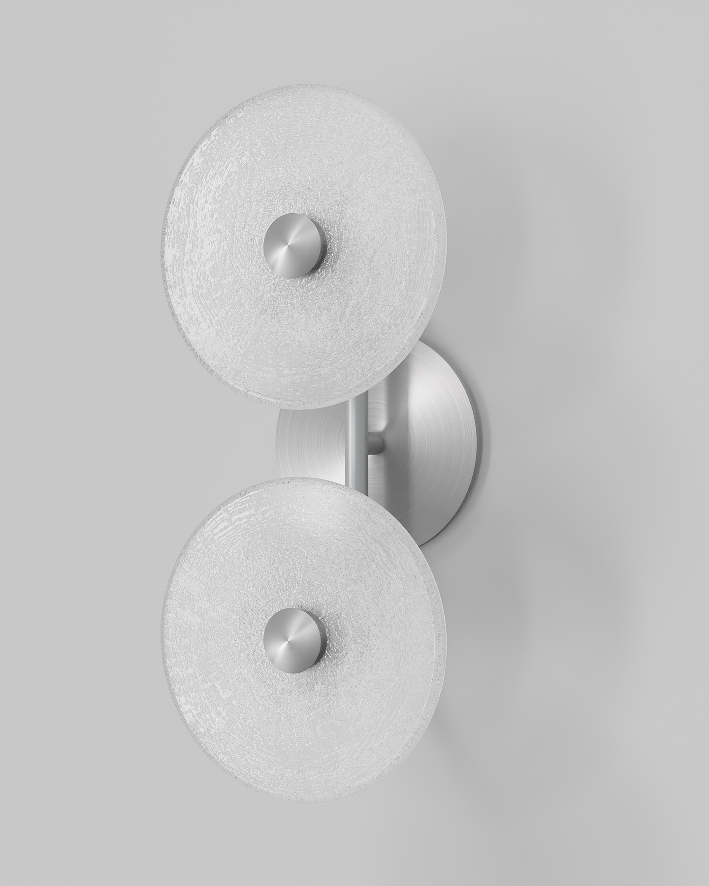 The Coral Duo Rod Wall Light, crafted and designed in Currumbin, Australia is a unique fitting made from two glass discs, mounted perpendicularly to a sleek rod. Available in Brass, Matte White, Matte Black, Steel and Medium Bronze, this fitting is versatile and suitable for a variety of contemporary interiors. Install a frosted glass fitting above a bedside table for a soft diffused light, or use the clear glass versions in clusters in a hallway for a more direct light.