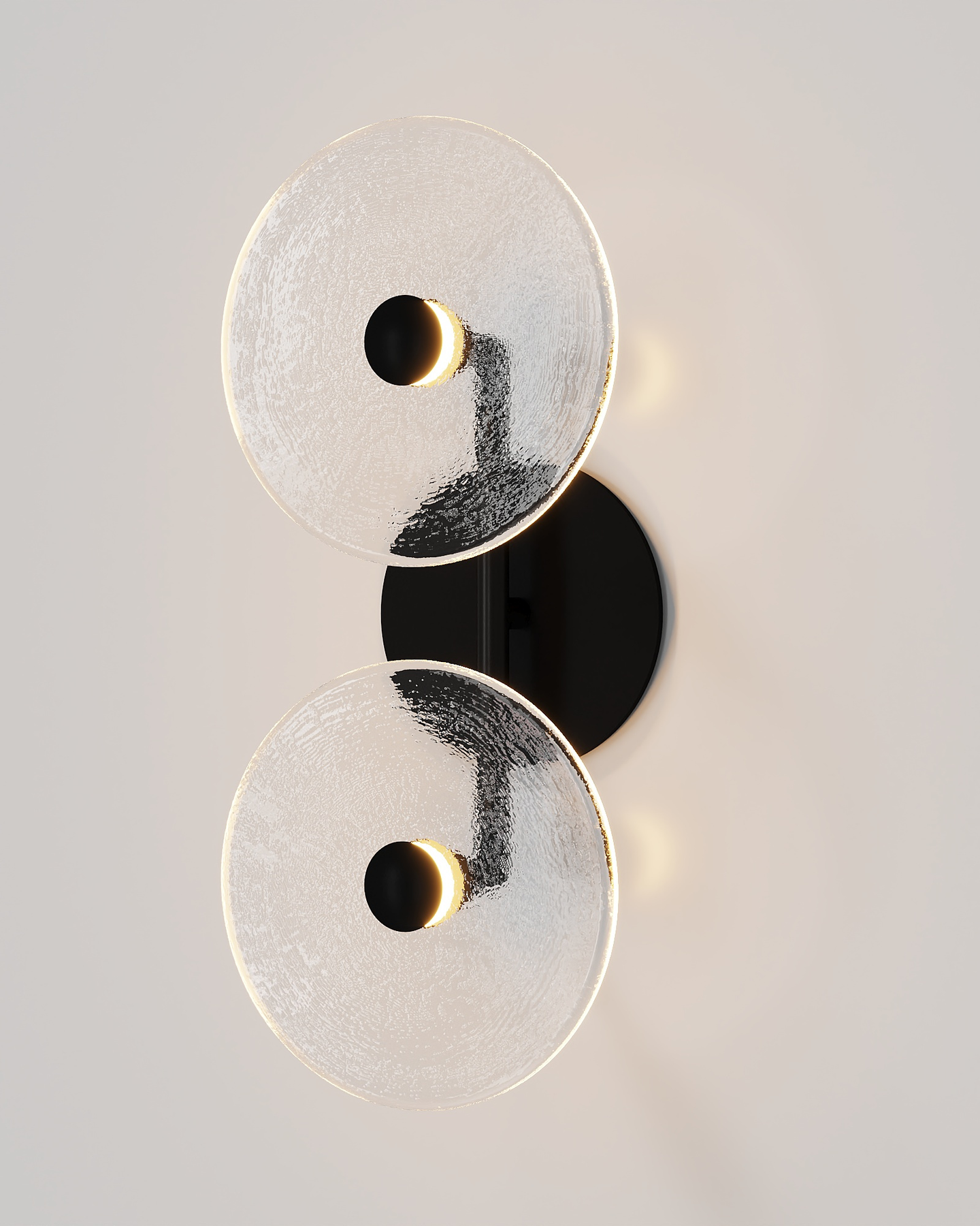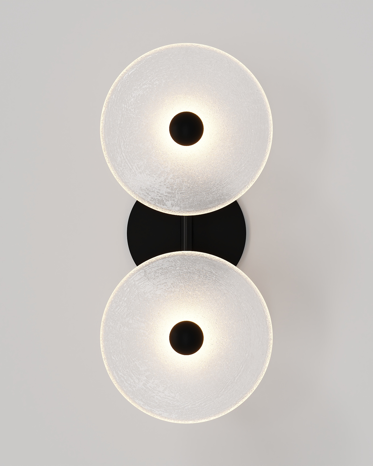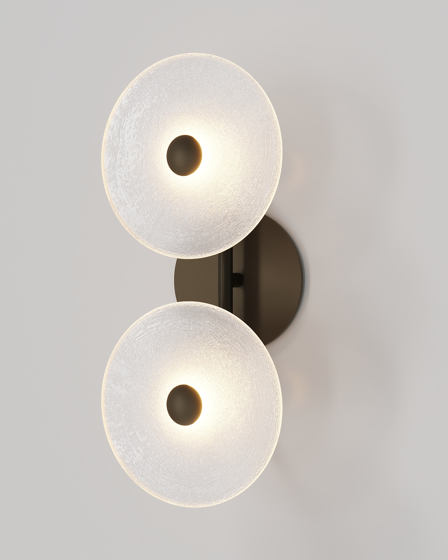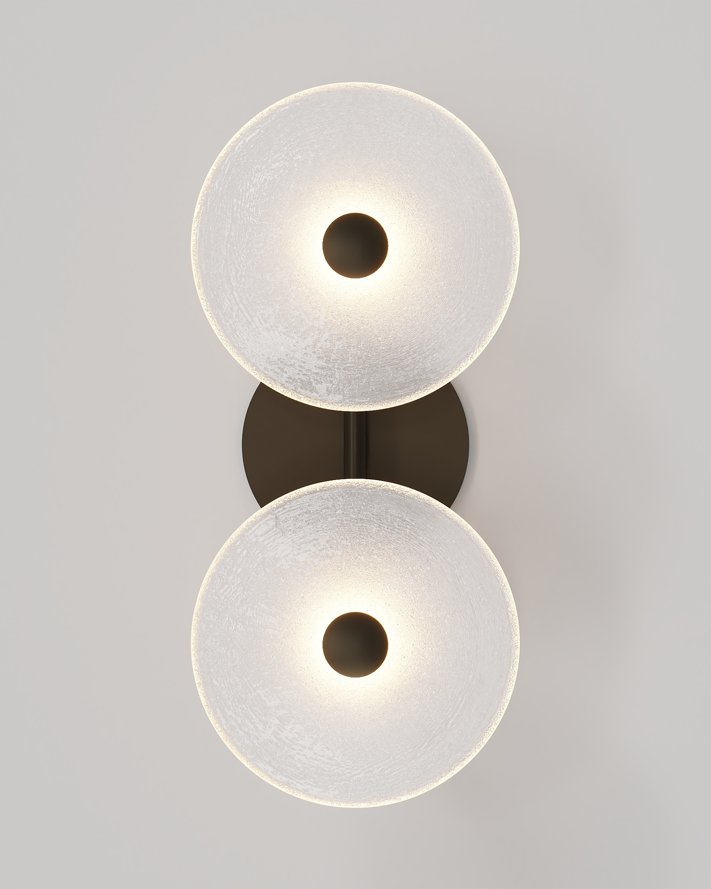 The Coral Duo Rod Wall Light, crafted and designed in Currumbin, Australia is a unique fitting made from two glass discs, mounted perpendicularly to a sleek rod. Available in Brass, Matte White, Matte Black, Steel and Medium Bronze, this fitting is versatile and suitable for a variety of contemporary interiors. Install a frosted glass fitting above a bedside table for a soft diffused light, or use the clear glass versions in clusters in a hallway for a more direct light.