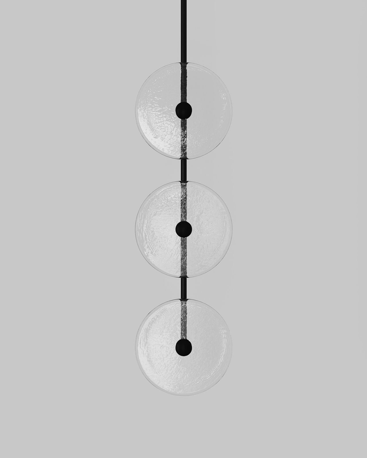 The Soktas Trio Pendant Light is individually handmade in Currumbin, Australia, using traditional glassblowing techniques. Designed by Oliver Höglund and Ryan Roberts, this piece features three hand-blown Swedish glass discs fixed upon a metal ring. The handmade process ensures each pendant has subtle variations, making every piece unique. Suitable for residential, commercial, and bathroom lighting applications, this eclectic design enhances interiors with a soft, warm glow of diffused light, adding depth and character to any space.