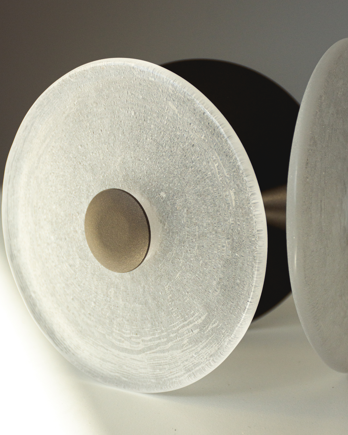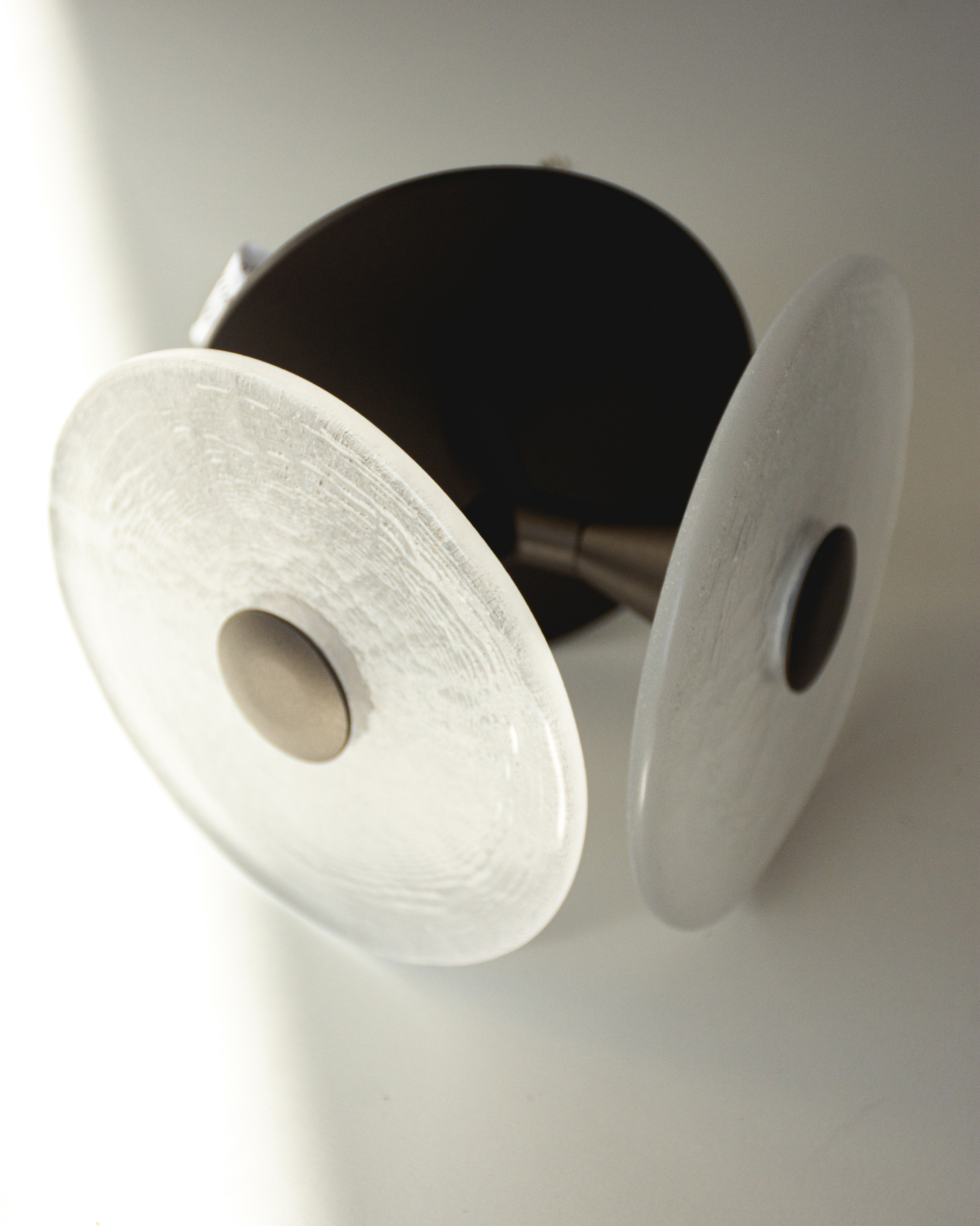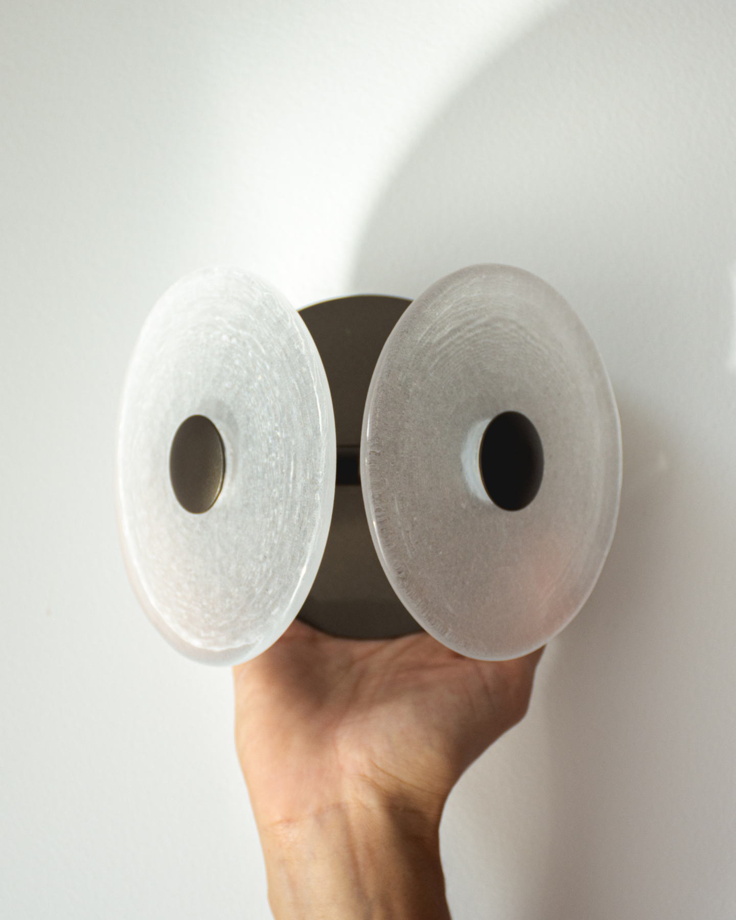 Making a contemporary statement in kitchens, bedrooms or entryways, this wall light features twin plates designed by Oliver Höglund and individually made to order in Currumbin Australia. Either clear or frosted, each premium Swedish glass piece is unique and both are mounted on an elegant wall metal plate available in matte black, matte white or medium bronze. This fixture will spread a nice warm light setting a welcoming mood and bringing character to any interior space.
