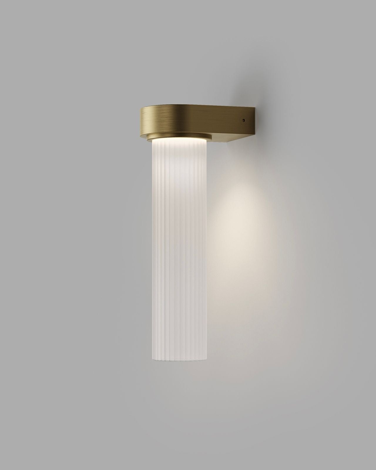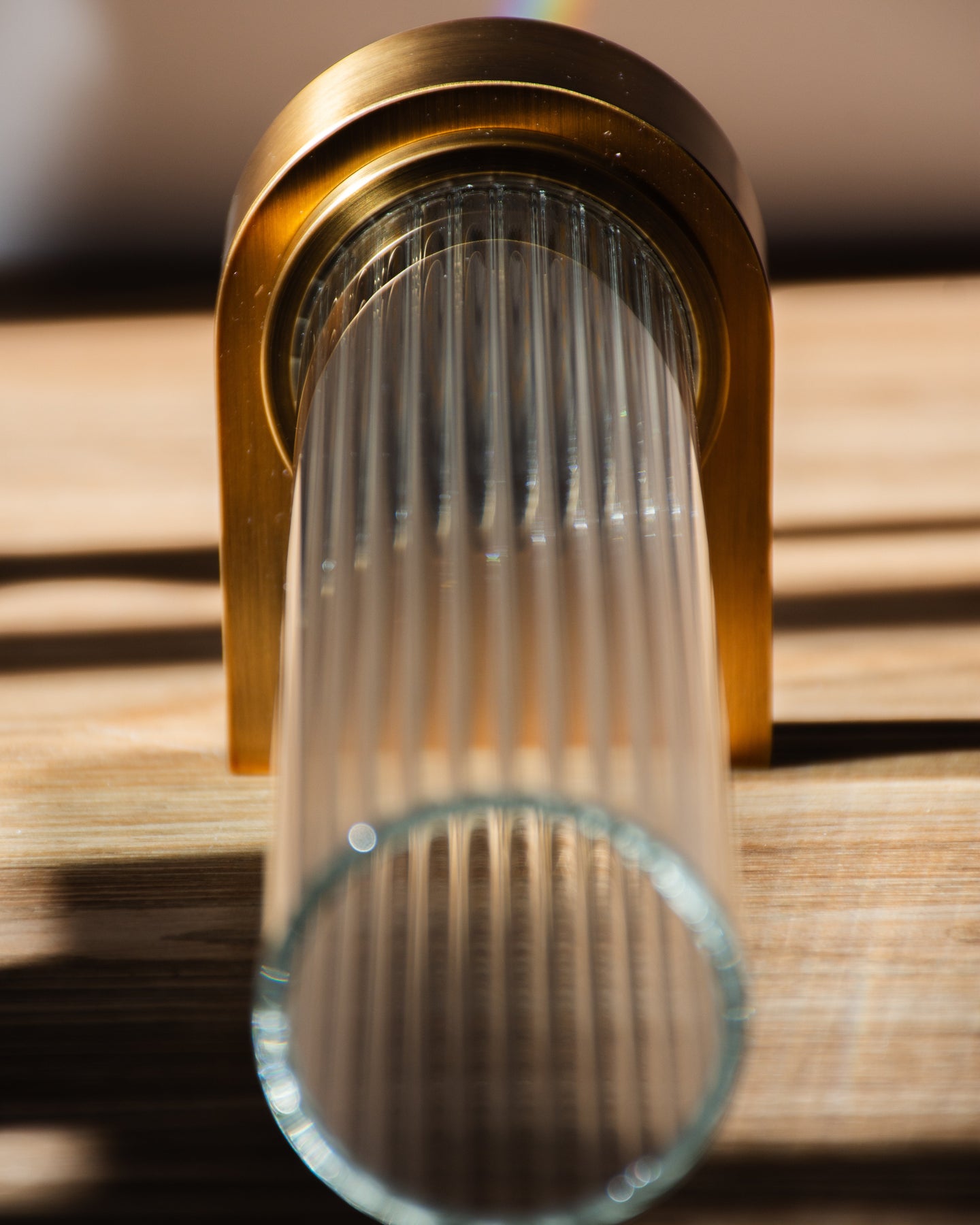 Cylindrical Glass Wall Light - Old Brass / Clear Ribbed
