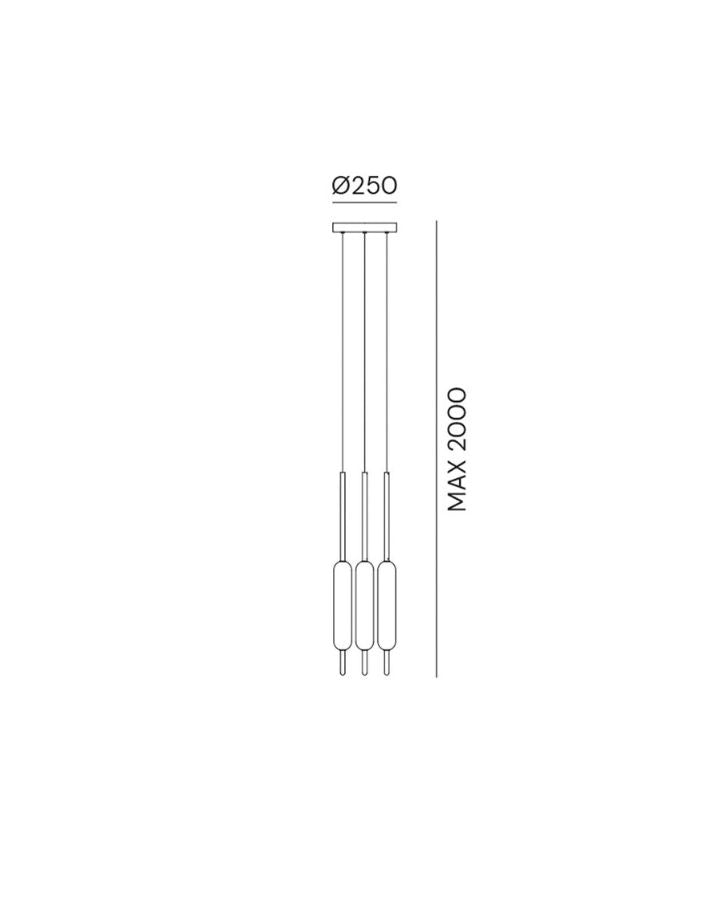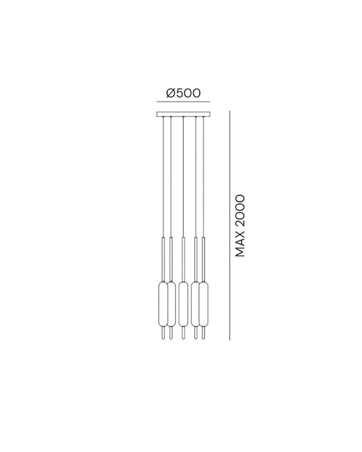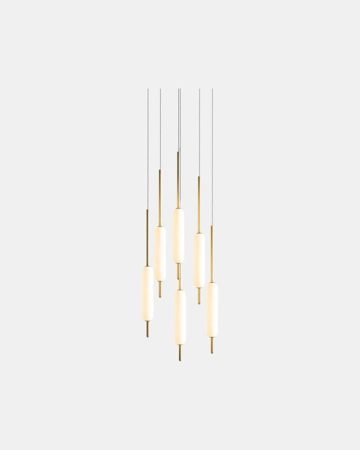 Inspired by the botanical spiky water plant Typha latifolia, this Italian design will bring a sense of calm and luxury to interior spaces. The brass stems of the pendant replicate the botanical plant leading into frosted tubular shades that house the fittings 10W LED's. Providing warm diffused light this design will emit an atmospheric light suited for stairwells, living areas or dining rooms.