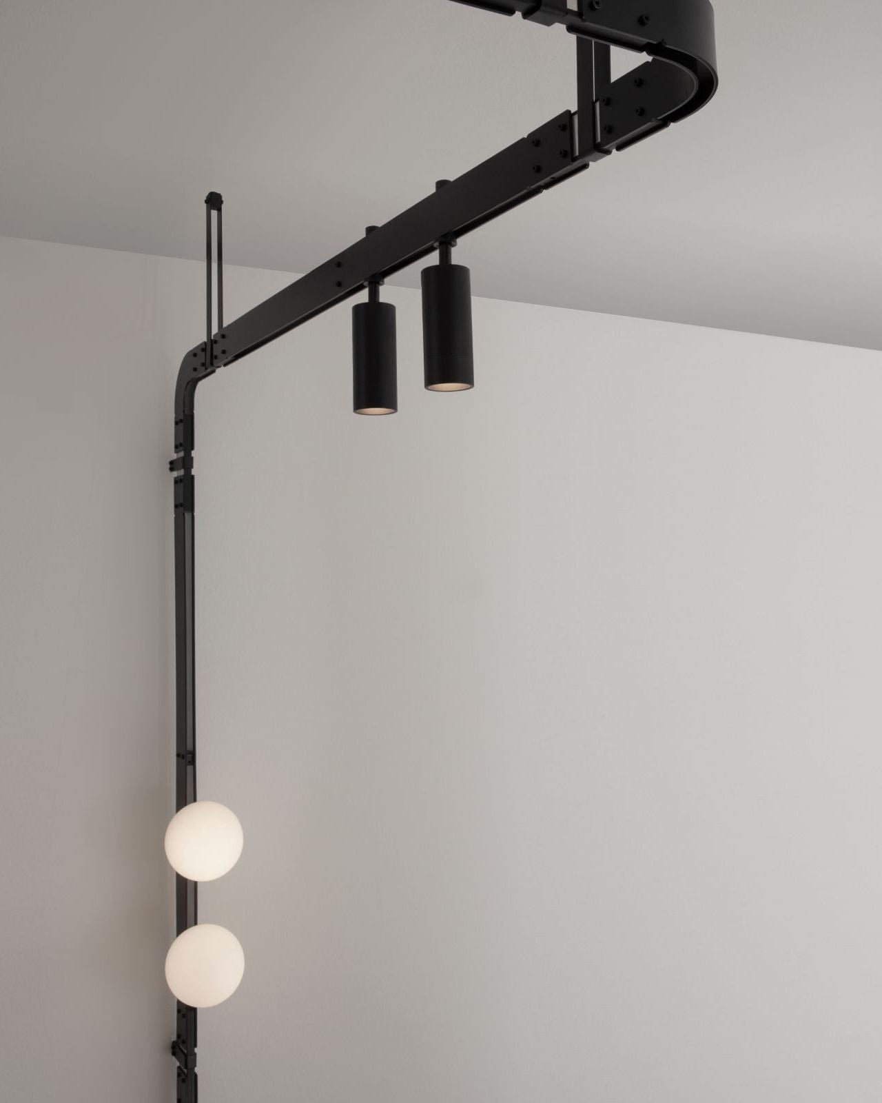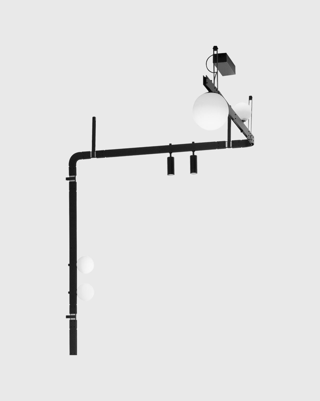 This modern linear style wall Light uses geometric abstract lines, round and articulated shapes to inspire unique abstract beauty. Using sophisticated integrated LED technology, the Inspired Multi LED Wall Light features multiple blown glass spheres and spotlights in varying sizes without the use of numerous electrical cables. Available in Matte Black or Matte White finishes.