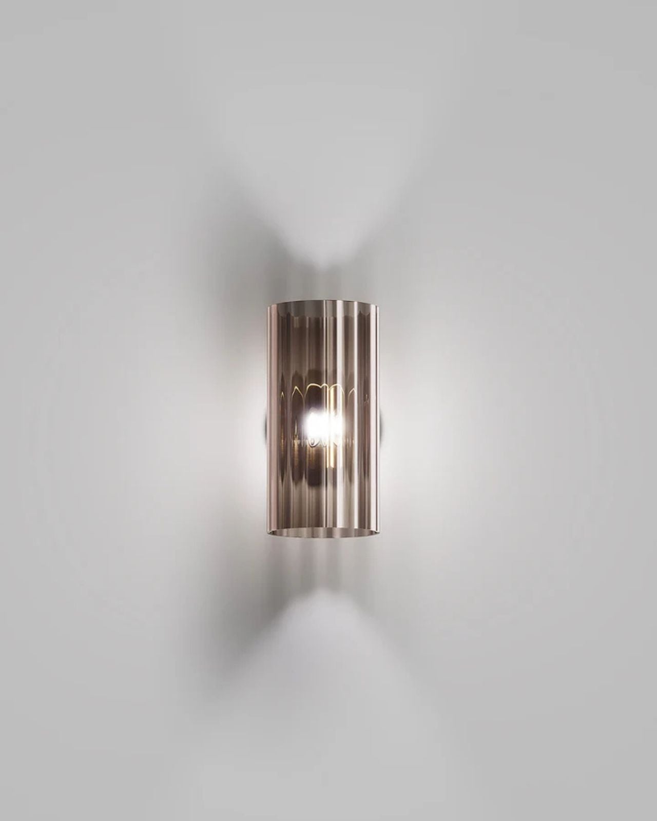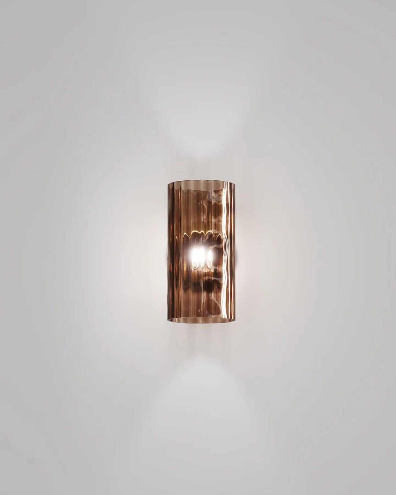 Italian Cylindrical Glass Wall Light - 140mm / Smoke Rombus / Matte Gold