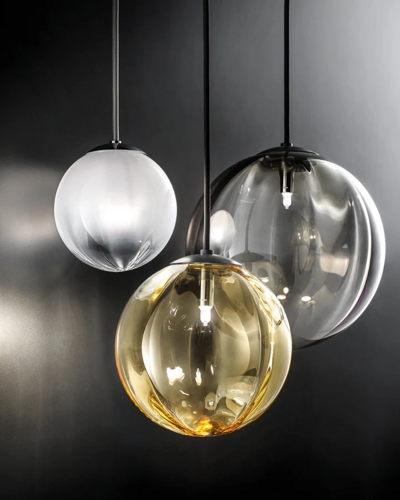 This stunning glass pendant has been crafted from Italian mouth-blown glass which holds soft diffuser properties which allows the light to produce a soft cloudy pattern on the surrounding surfaces. Available in a variety of colours and assorted sizes.