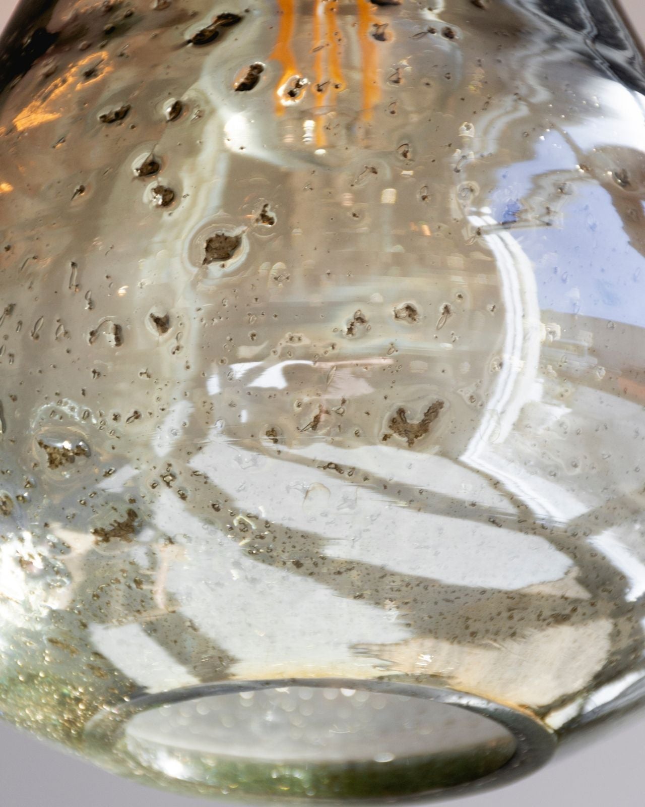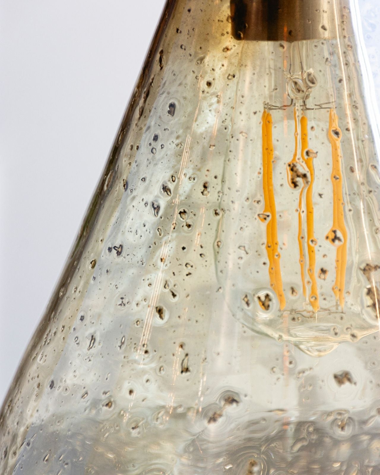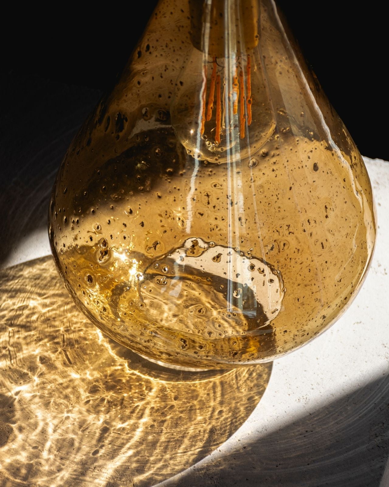 The Lustre Teardrop Stone Glass Pendant Lights are hand-blown into a classic teardrop shape, with a stone effect through the glass giving it a wonderful organic texture, while the lustre of the glass finishes it into an elegant light. This light is available in 3 colours (Clear, Pale Gold, and Pale Green).