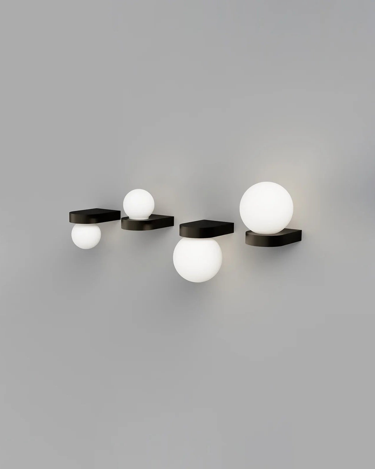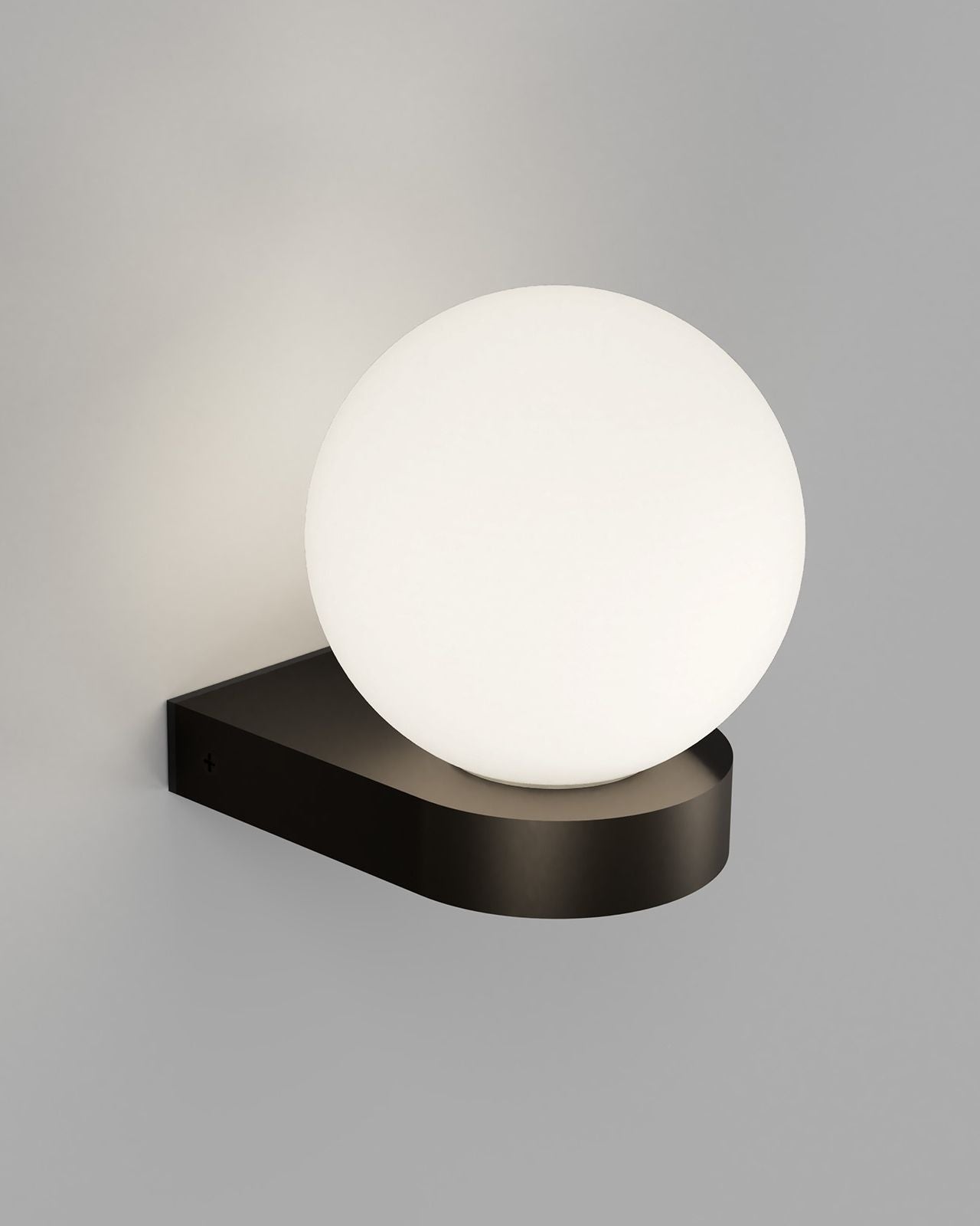 This wall light will be a contemporary and minimal addition to spaces. The Perched Orb Wall Light is a versatile light, featuring a modern white glass sphere, which can be perched above or hung below an old bronze sleek and modern ledge. The orb spreads an even and soft light around, IP-rated IP44 and can be displayed individually or as a group playing with the sizes and configurations. Available in two sizes small and medium.