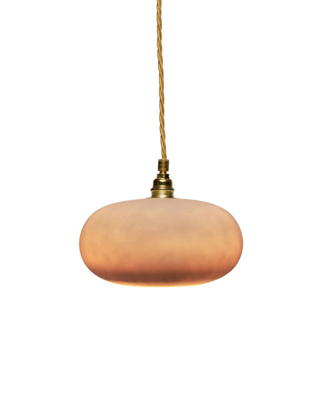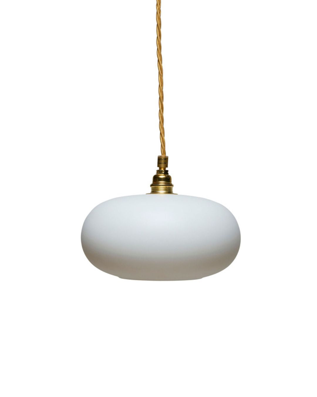 This pendant is an artisan piece that features a wide shape and a shallow height. It is designed and crafted by hand in Denmark, using mouth-blown glass techniques and silver detailing to create a retro aesthetic that adds a touch of sophistication to any interior. Use it as a single installation to make a focal point in your home or install it as a cluster. It requires an E27 globe, which is not included. Choose from a variety of sizes and sanded glass finish to suit your interior space.
