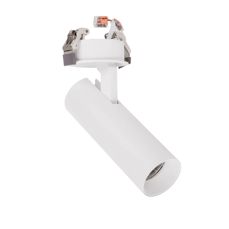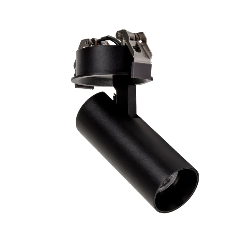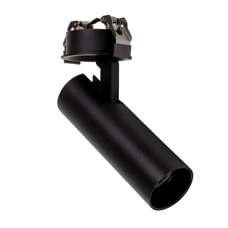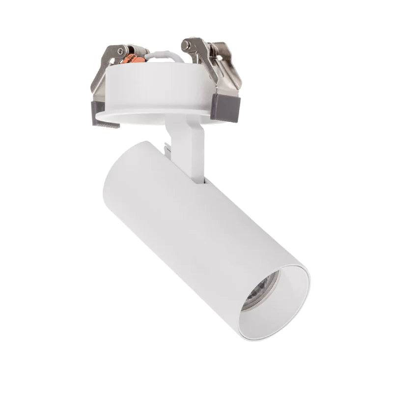 This recessed spotlight features a cylindrical shade that is adjustable and meant to direct the light where it is needed most in any modern or contemporary interior space. Made from aluminium, it comes with two finishes, matte black or matte white, and it is available in two wattage options, 10W or 15W. Ideal for kitchens, bedrooms, or living rooms and with a 60° beam angle, this fitting is TRIAC dimmable so that the light can be set to one of five colour temperatures; 2700k, 3000k, 4000k, 5000k, 5700k.