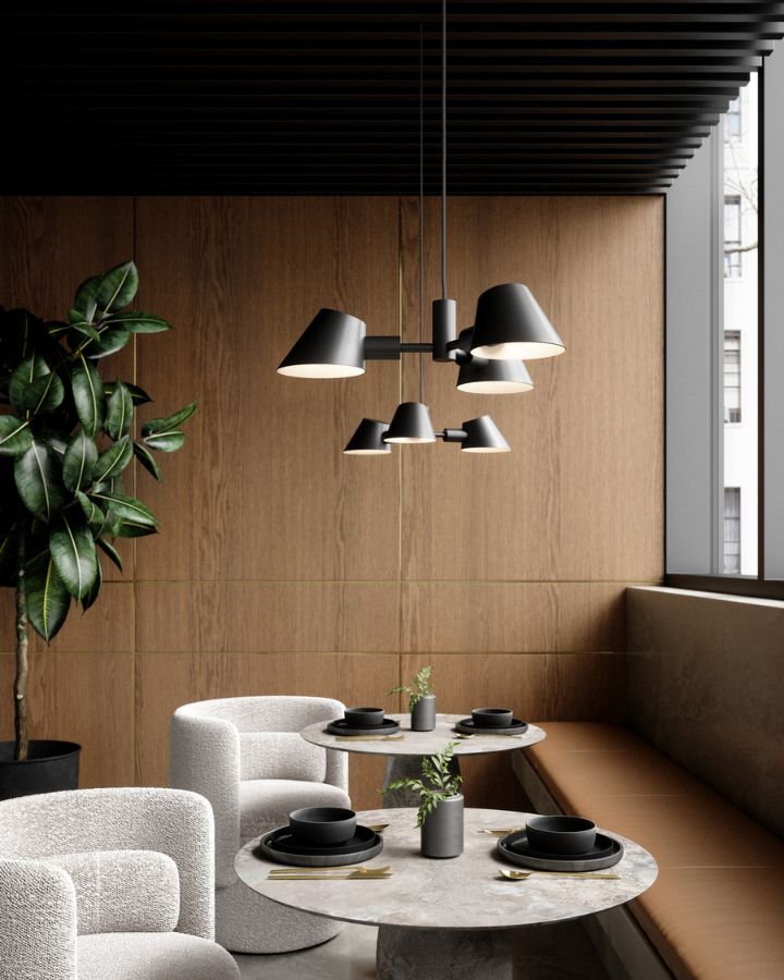 This Nordic-designed pendant light is perfectly suited to illuminate living and dining spaces. The Contemporary Danish 3-Spot Pendant Light is modern and timeless in style, which will emit a soft and comfortable illumination both upwards and downwards. Available in a Matte Black finish.