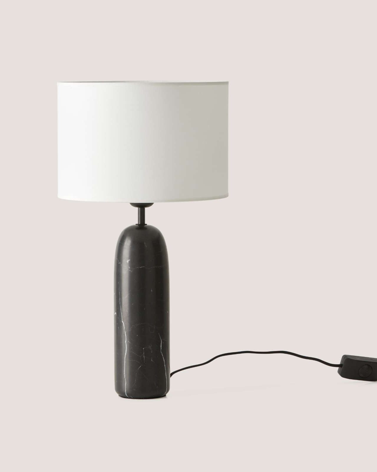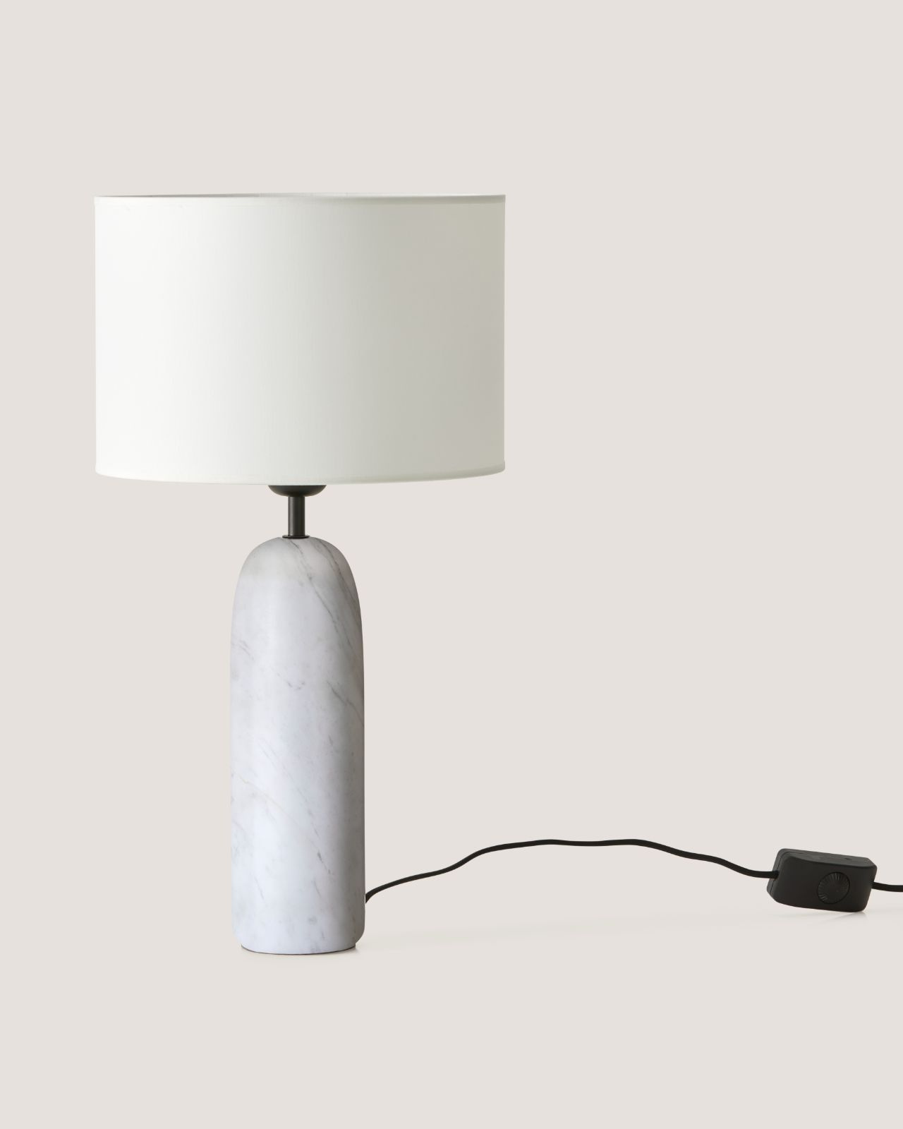 This table lamp combines effortless elegance and refined minimalist design. Featuring a high-quality marble base avalible in either a white or black marble finish, this design is paired with a white linen drum shade. A lamp that is perfectly suited to be placed beside the bed, on a hallway console or upon an office desk.